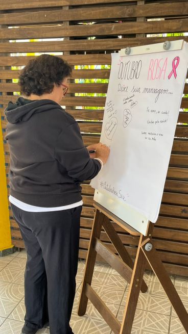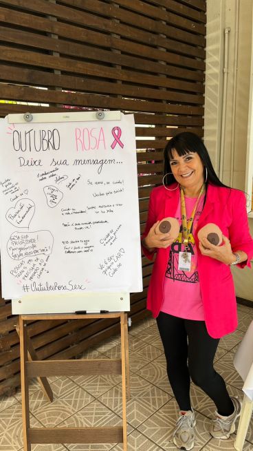 Outra ação foi realizada no Sesc Prainha, em Florianópolis, pela técnica da Assistência, Arlei Borges, que retornou ao trabalho há um ano após enfrentar um diagnóstico de câncer de mama.