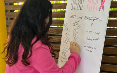 Durante o mês de outubro, o Sesc promoveu uma série de atividades voltadas à conscientização sobre a prevenção do câncer de mama e ao fortalecimento do autocuidado, mobilizando colaboradores, clientes e a comunidade em ações de saúde e acolhimento. Foram rodas de conversas, palestras, ações educativas, entre outras iniciativas realizadas durante o Outubro Rosa em diversas Unidades de SC.