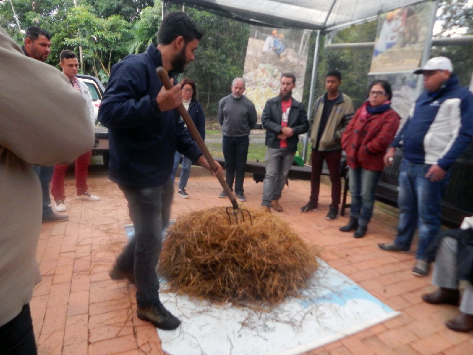 Uma breve introdução ao tema e à história dos diferentes métodos de compostagem foi realizada, seguida da montagem de uma leira de compostagem – estrutura que vai receber os resíduos orgânicos provenientes dos restos da cozinha ou dos pratos, transformando-os em adubo.