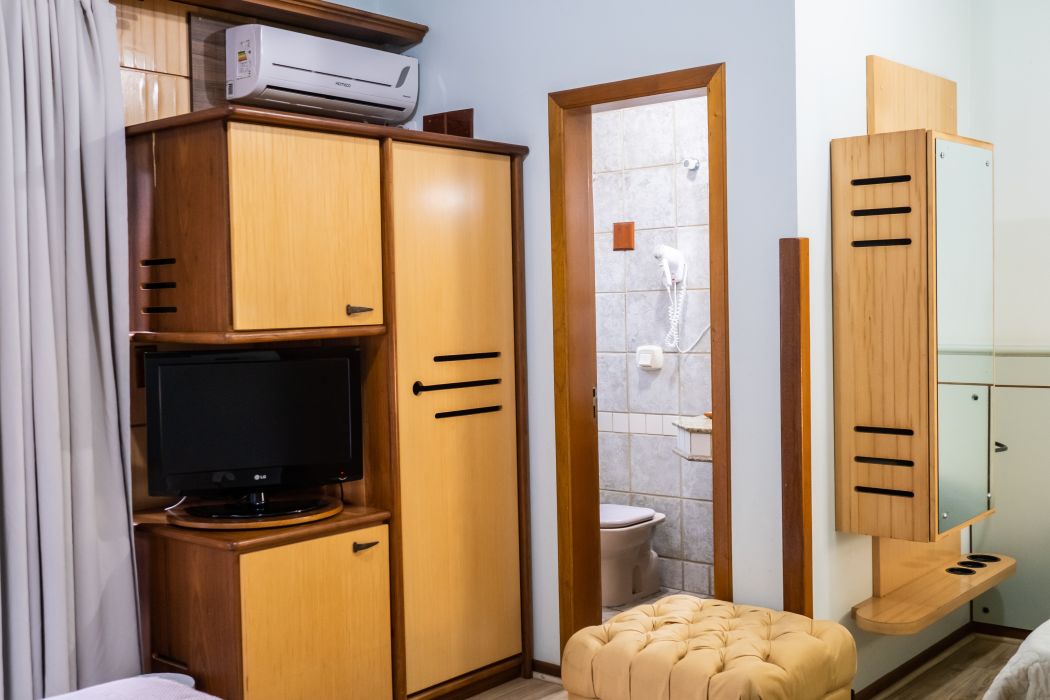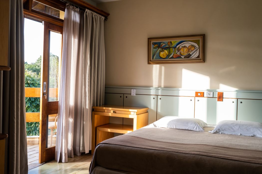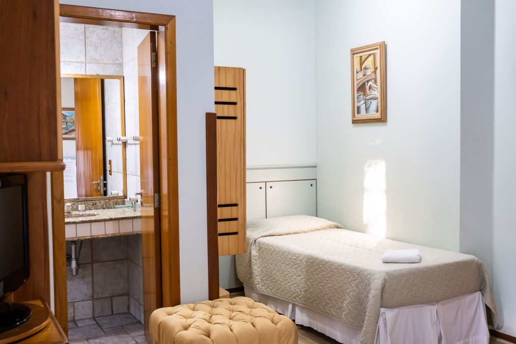 Acomoda até três pessoas com opção de 01 cama de casa e 01 cama de solteiro ou 03 camas de solteiro