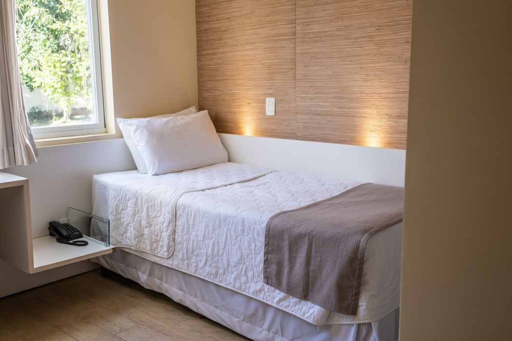 Quarto exclusivo para acomodação de 01 pessoa, com uma cama de solteiro. Aproveite a cidade mais germânica do país com conforto.