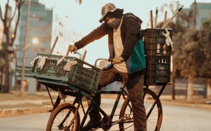 Sinopse: Dona Caçula atravessa a cidade equilibrando metais e plásticos em cima de sua bicicleta cargueira. O filme apresenta as técnicas, as paisagens e as histórias do grupo de catadores-ciclistas no contrafluxo do consumo urbano em Brasília.