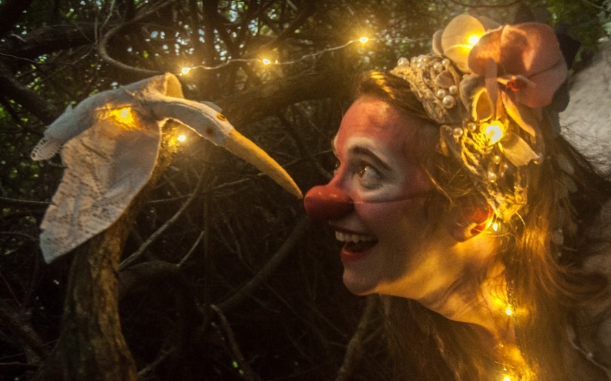 Ilha de Encantaria é uma obra hibrida de contação de história e palhaçaria que nasce da pesquisa (En)cantos de uma Ilha. A obra é construída sob a temática das lendas e narrativas que povoam a Ilha de Santa Catarina. Mas, sua roupagem conduzida pelo universo lúdico da palhaçaria em diálogo com as narrativas fantásticas da ilha universaliza a obra, construindo um imaginário de encantaria, de uma ilha que flutua no tempo e no espaço.