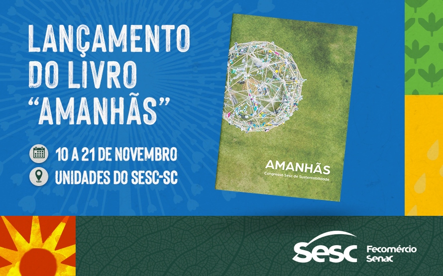Entre os dias 10 e 21 de novembro, realizaremos o lançamento do livro "Amanhãs – Congresso Sesc de Sustentabilidade”, publicado pela Editora Sesc-SC. A obra reúne artigos de caráter científico e relatos de experiências elaborados a partir do Congresso de Sustentabilidade, realizado em 2025, e representa um importante registro das reflexões e práticas voltadas à temática ambiental. O lançamento será realizado nas unidades do Sesc de Santa Catarina e contará com atividades diversas sobre a temática do meio ambiente.
