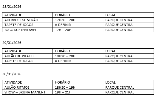 • SuperAção Verão: Atividades esportivas e recreativas diversas.