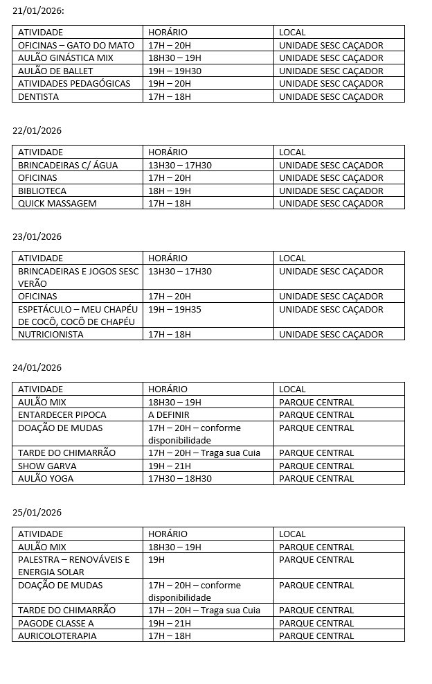 • SuperAção Verão: Atividades esportivas e recreativas diversas.