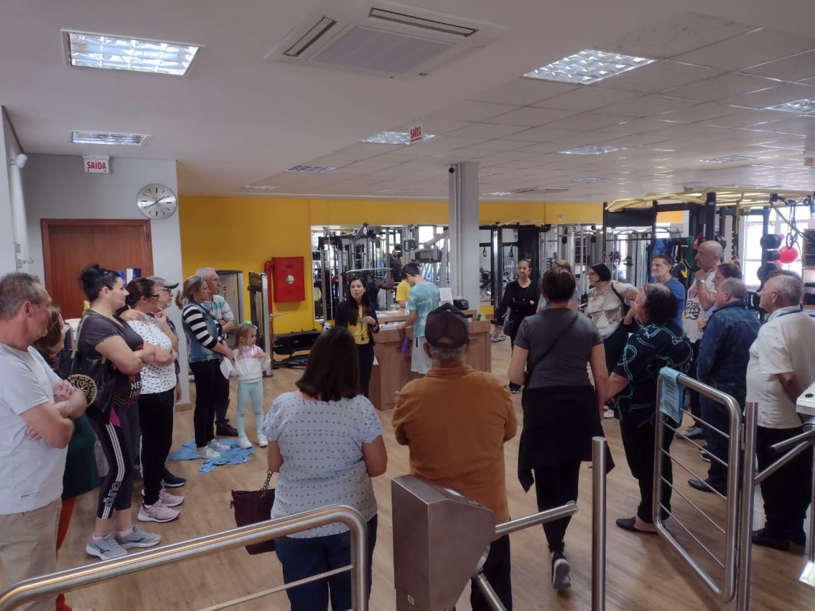 Os convidados puderam conhecer as instalações do Sesc e saber mais sobre as atividades oferecidas para o público 50+. Logo após o passeio, foi realizada uma oficina de minicucas.