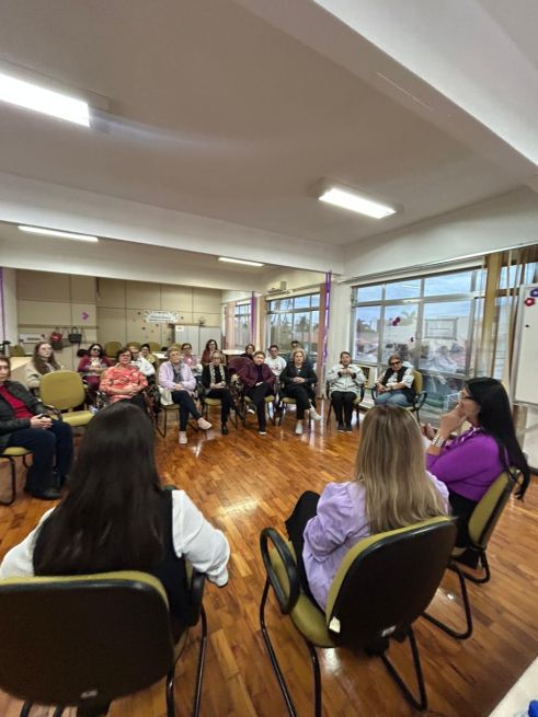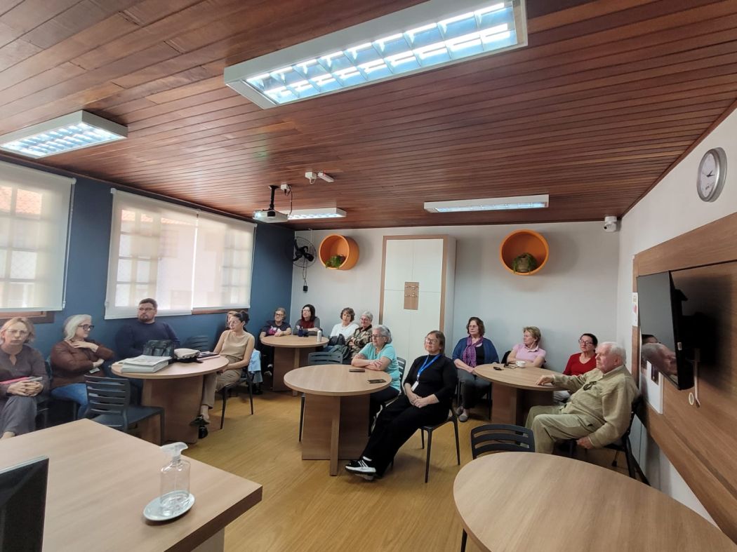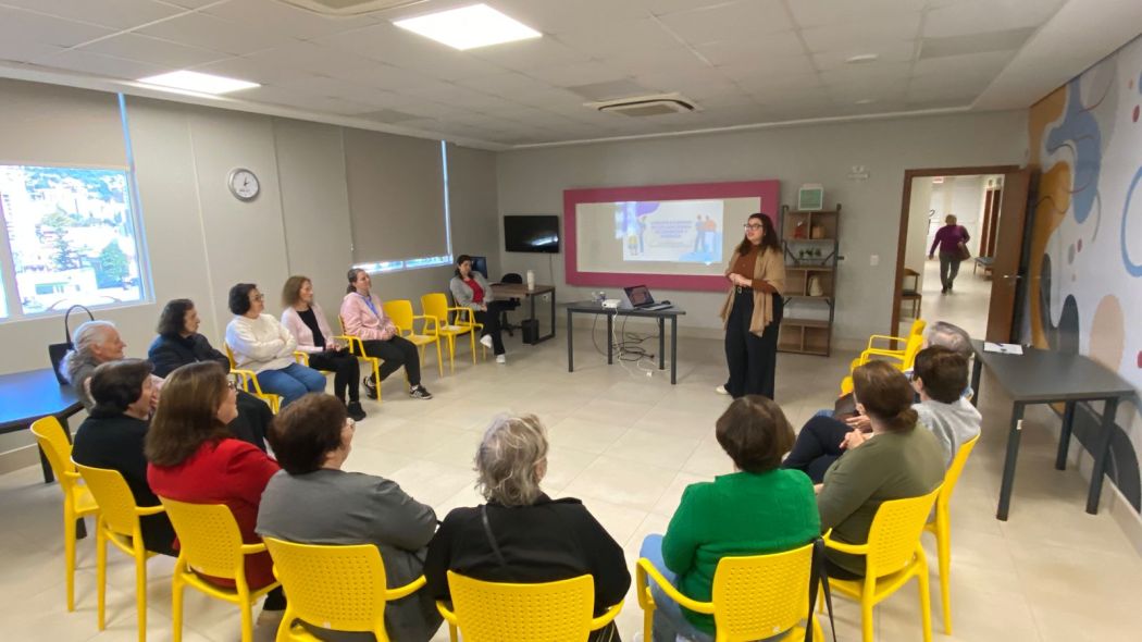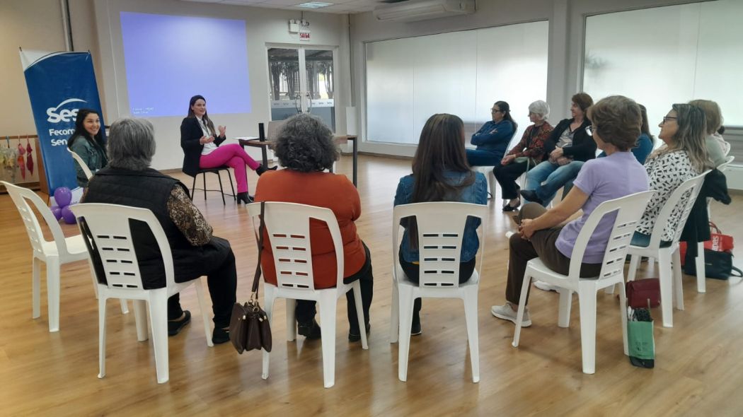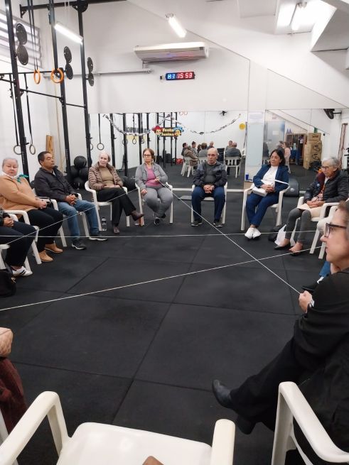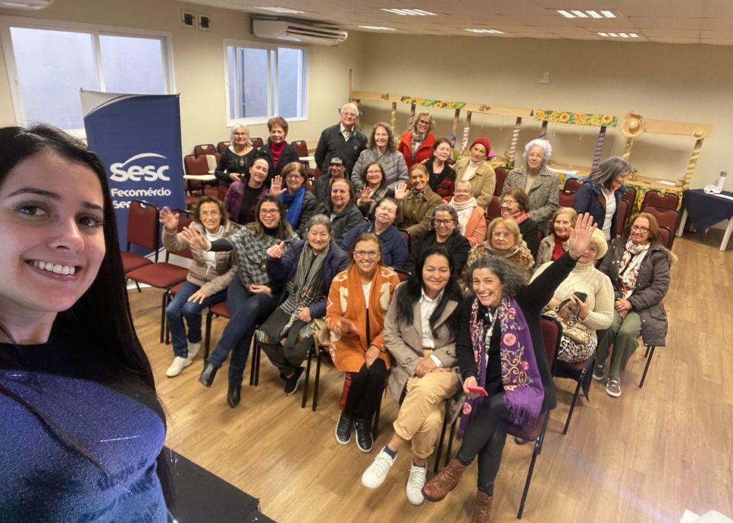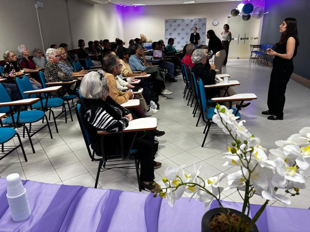 O Sesc Mafra promoveu a roda de conversa “Minha História, Meu Valor”, um espaço acolhedor para o compartilhamento de histórias de vida, com o objetivo de reconhecer as trajetórias individuais e promover reflexões sobre o respeito e a dignidade no processo de envelhecimento. Outra atividade de destaque foi a palestra com a Rede Catarina de Proteção à Mulher, da Polícia Militar, que abordou os diferentes tipos de violência contra a pessoa idosa, além de apresentar formas de prevenção e orientações sobre direitos e mecanismos de proteção.