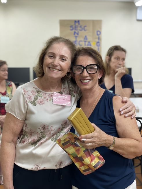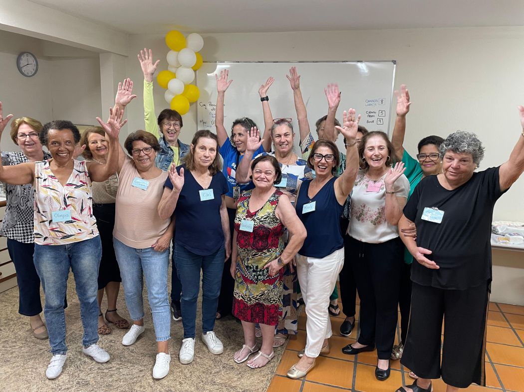 A turma do Mente Ativa do Sesc Blumenau promoveu uma celebração especial em homenagem ao Dia das Mães. As participantes confraternizaram com prática de Dança Circular, com coreografia adaptada para que todas pudessem participar, café da tarde e amigo oculto.