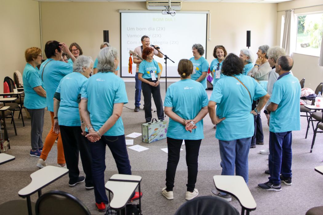 O evento promoveu a interação entre os idosos participantes das atividades do Sesc como: Mundo Digital Máster, Conecta 60+, Mente Ativa, Dança Circular, entre outros grupos de interesse do Sesc, que visam proporcionar espaços de integração, reflexão sobre envelhecimento, socialização, protagonismo e empoderamento.