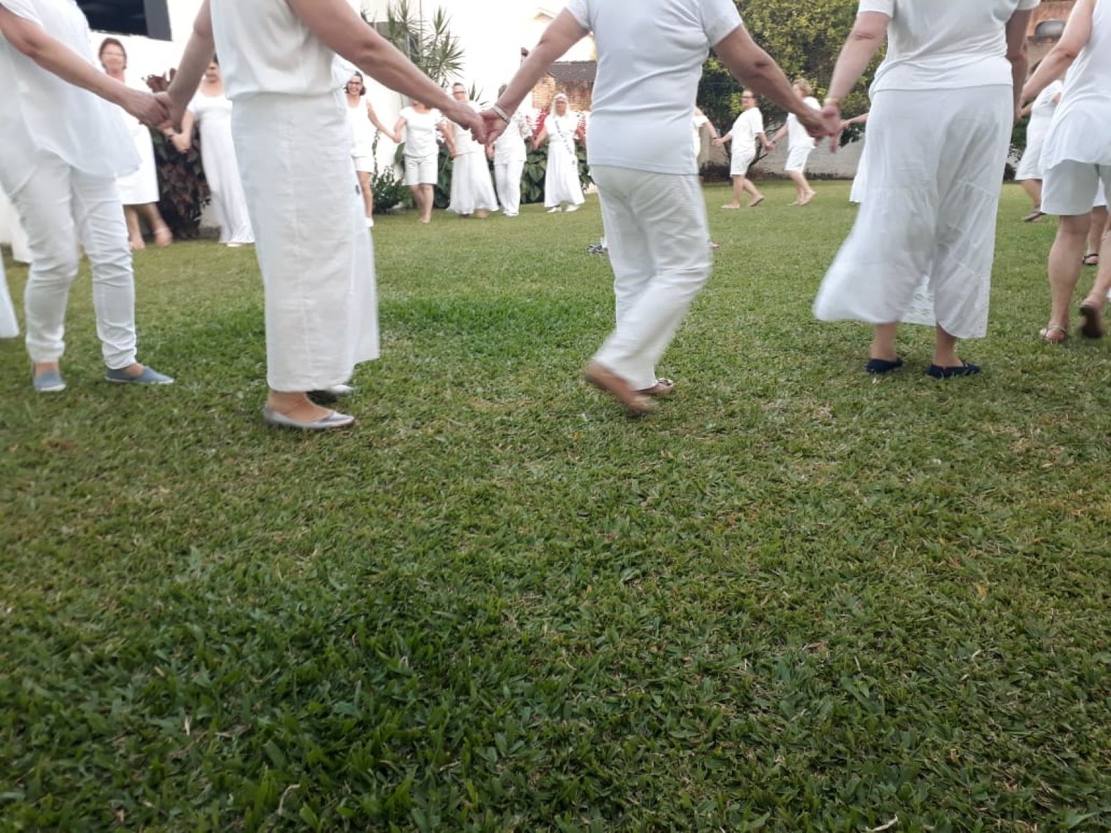 E este ano não foi diferente todos se reuniram na casa de Adair de Almeida, integrante de um dos grupos, no dia 10 de dezembro, onde celebraram com muita alegria, emoção e gratidão com os integrantes dos grupos e convidados em uma Roda Aberta. O encontro com a recepção calorosa entre as pessoas, iniciou com uma dança de saudação e logo após a dança do Beija Flor para saudar a natureza, com as músicas dos Florais de Bach (Beech e Holly). Depois foi a vez das músicas natalinas, coreografadas por Cristiana Meneses, da música Canção da América para celebrar a amizade e para finalizar a música Jesu, Joy of Man’s Desiring (dança com o uso da vela), para celebrar a vida. Magali Bianchi Bacha integrante de um dos grupos declamou lindamente uma poesia agradecendo a vida.