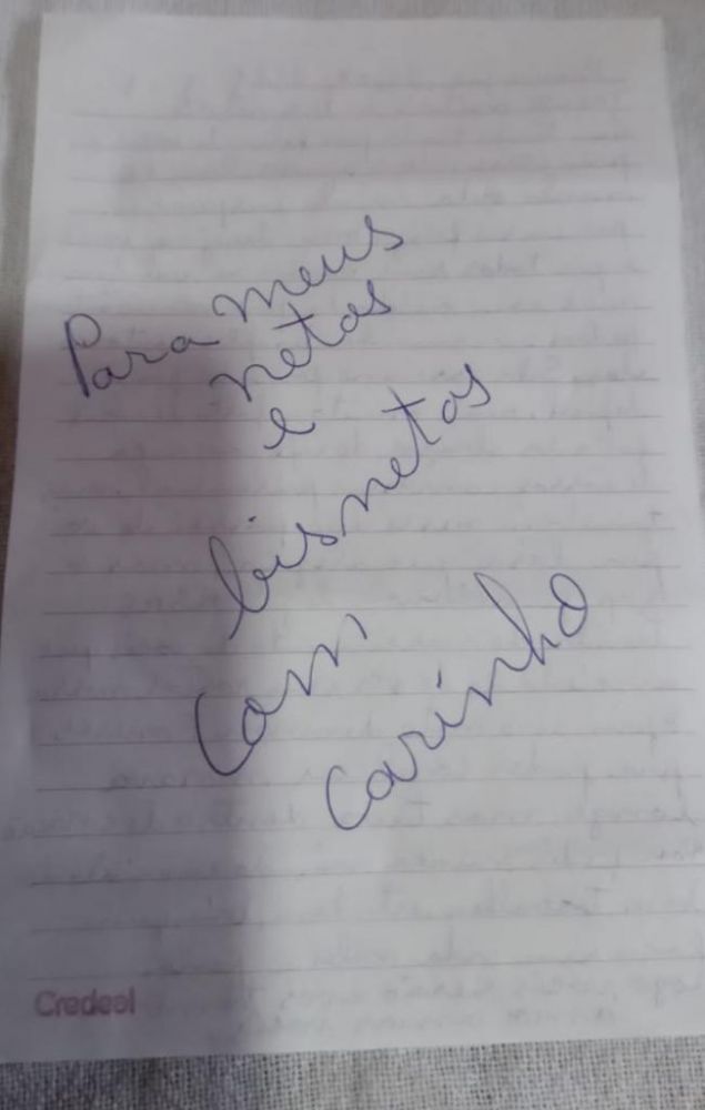 Silvana de Souza conta que sempre foi o xodó da avó. Ela não tem filhos mas relata que tem um carinho enorme por seus sobrinhos, mas que descobriu o amor verdadeiro quando ficou tia avó, ao pegar a bebê no colo experimentou a mais bela sensação da qual nunca vai esquecer e que seu maior desejo é ter mais sobrinhos netos, então guardou a carta em um porta-joias que ganhou da família.