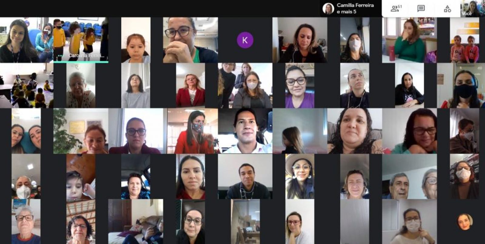 As áreas de Educação e Assistência do Sesc Estreito (Florianópolis) e Palhoça realizaram, no dia 07 de maio, um encontro on-line entre idosos, crianças e familiares das Unidades com o objetivo de promover um espaço de respeito e troca de vivências intergeracionais. O evento foi marcado por contação das parlendas em homenagem às mães, dança circular e música. Vale destacar, que algumas mães das crianças puderam reconhecer entre as idosas participantes, suas professoras que marcaram sua infância.