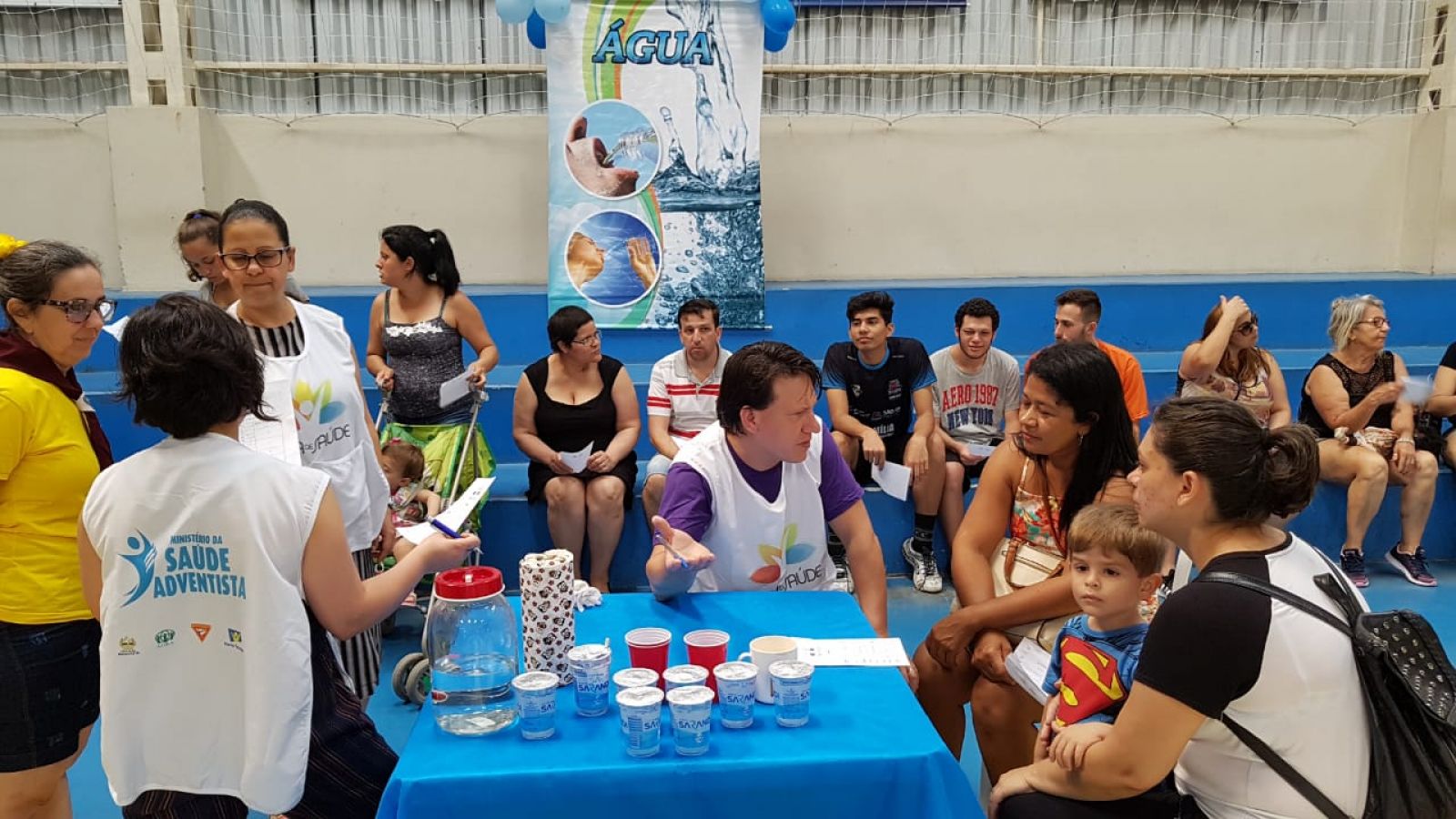 • Feira da Saúde (atividades em estações) – água (água x peso), nutrição (teste de glicemia), exercício físico (teste de aptidão física), prevenção (autoexame), ar puro (teste fluxo expiratório), luz solar (aferição PA), qualidade de vida (teste balança corporal), descanso (massagem), espiritualidade (1 - entrevista, 2 - resultado da idade biológica, e 3 - aconselhamento);