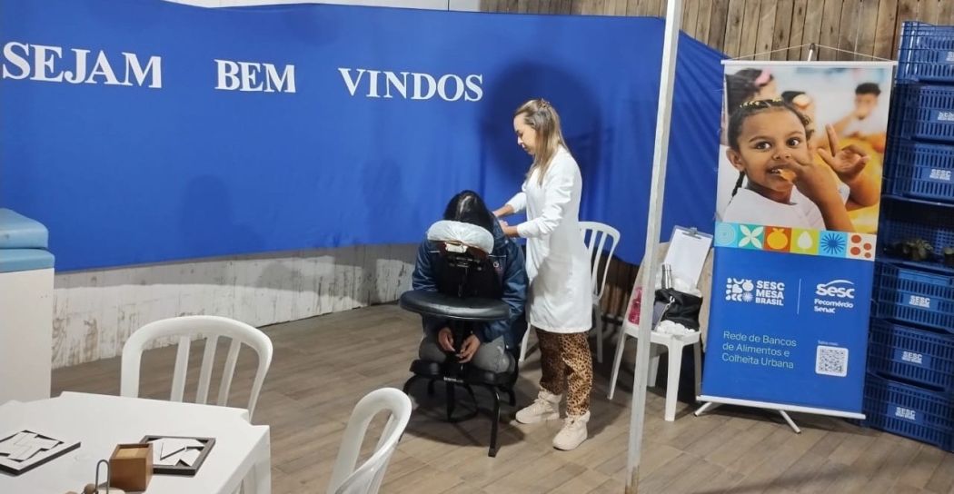 O Sesc Mesa Brasil de São José dedicou ainda um momento especial, agenciando uma iniciativa especial focada no cuidado, bem-estar e integração aos colaboradores da Ceasa/SC. Por meio de diversas atividades, como corte de cabelo, quick massagem, teste de glicemia, aferição de pressão arterial, teste de acuidade visual e degustação de receita com aproveitamento integral dos alimentos, o evento buscou fortalecer o espírito de equipe e reafirmar o compromisso da instituição com a qualidade de vida no ambiente de trabalho.