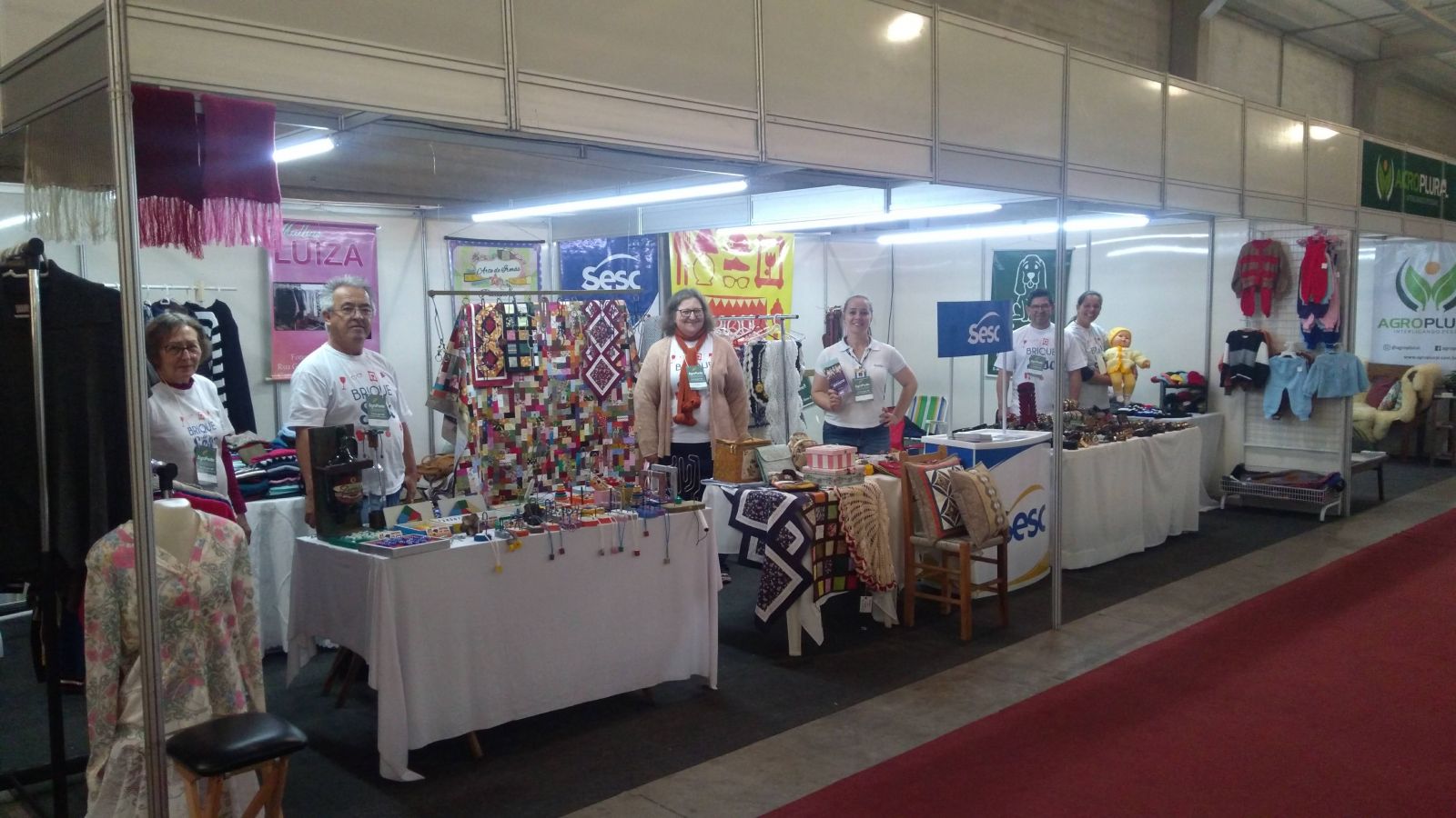 Os expositores do projeto Brique do Sesc tiveram a oportunidade de mostrar seus trabalhos, nos dias 15 a 19/08, em dois stands do Sesc na Feira do Agronegócio & Agricultura Familiar (AgroPonte). O evento aconteceu no Pavilhão José Ijair Conti e tem como objetivo agrupar, integrar, relacionar e promover o desenvolvimento individual e coletivo dos setores da avicultura, agricultura, pecuária, suinocultura, apicultura, fruticultura, piscicultura, turismo de negócios, meio ambiente e ecologia.