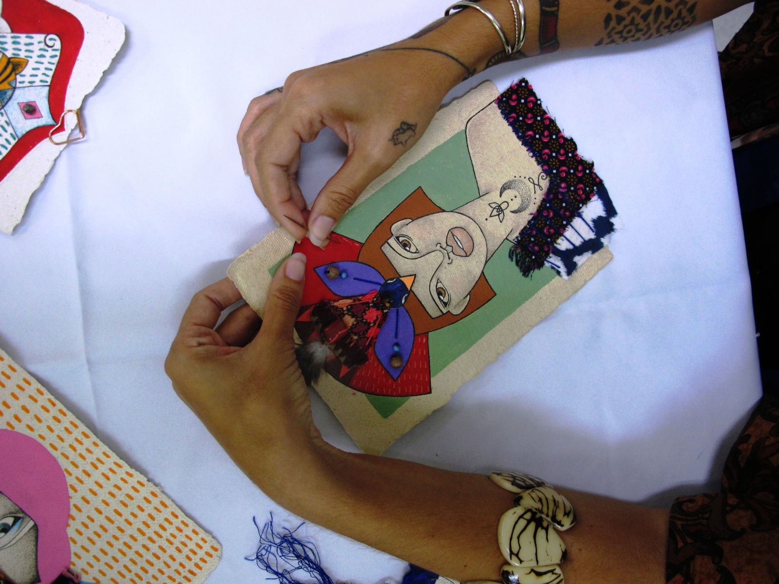 Muita gratidão à Carina, Patrícia e Vanessa sempre muito bem solícitas, atenciosas, inovadoras, sabendo conduzir todos os conteúdos de forma segura e com didática própria ao que o curso propôs. Muitas vezes vão além de facilitadoras, são mão e colo amigo. Obrigada ao Sesc minha instituição querida, por oportunizar esse projeto que tem nos proporcionado essa capacitação, envolvimento e mudança de comportamento. Sairemos não só melhores artesãos, mas muito mais envolvidos com o próximo.