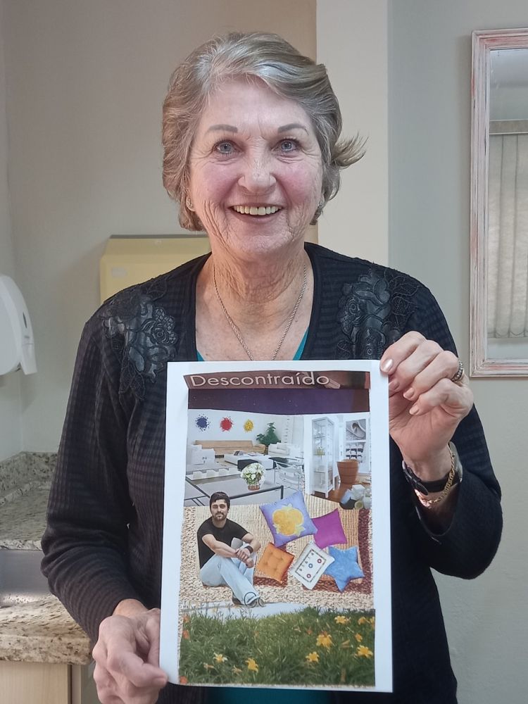 Utilizando imagens inspiradoras em diversos materiais como revistas e catálogos, os participantes recortaram as ilustrações, que chamavam a sua atenção e realizaram a colagem sob a mediação da instrutora do Trabalho Social com Grupos, Mônica de Gasper Alarcon.