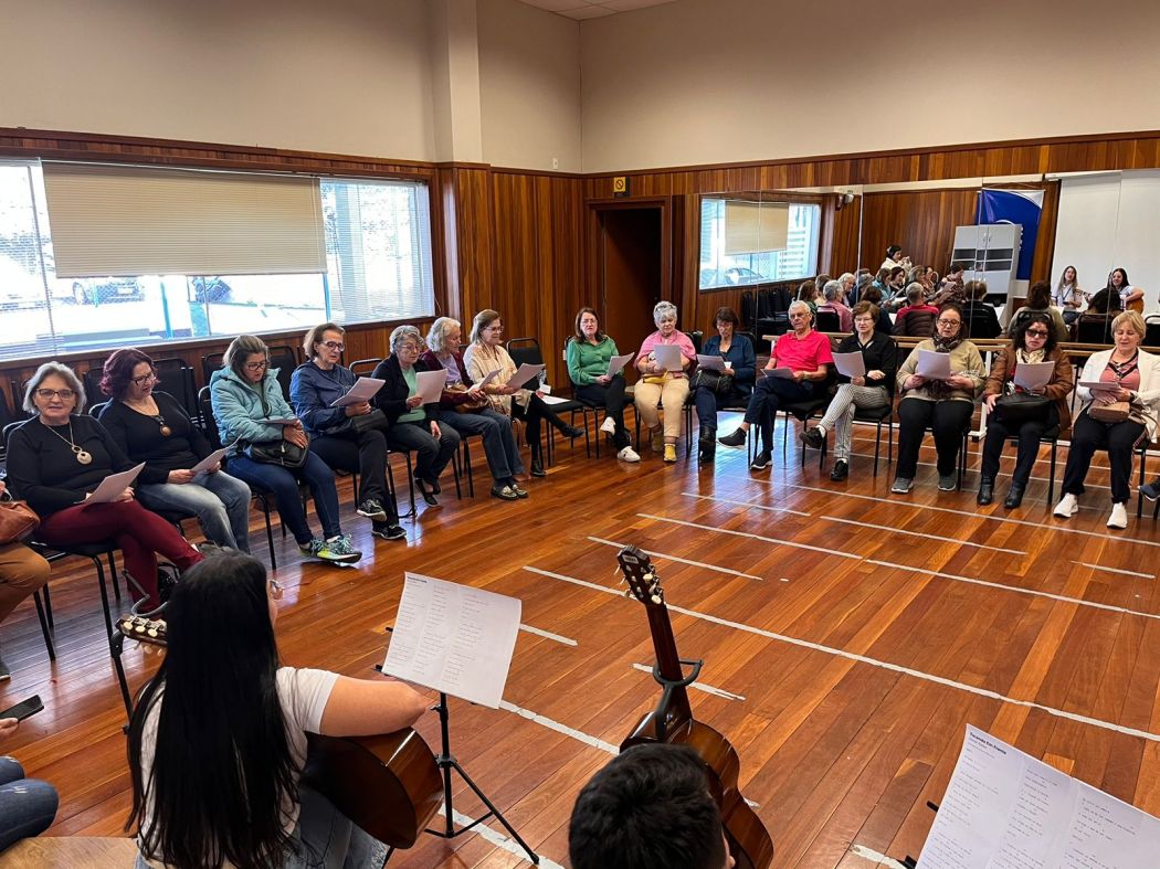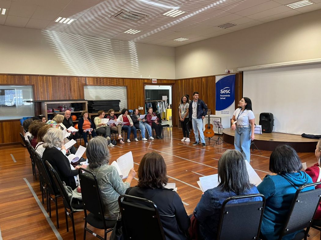 O passeio contou também com a integração com a equipe do Sesc São Joaquim. Os colaboradores das Unidades realizaram a atividade de “cantoria" para o grupo, resgatando boas experiências e proporcionando o bem-estar através da música.
