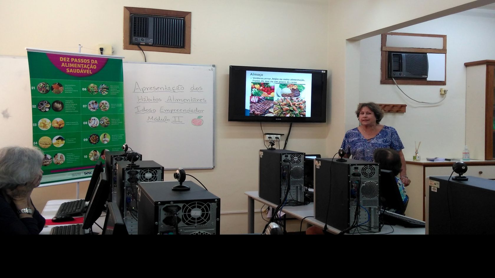 Em agosto e setembro, as turmas inscritas no Projeto Idoso Empreendedor em Blumenau, participaram de uma atividade especial, realizada em parceria com a área da nutrição do Sesc. Cada integrante elaborou uma apresentação no programa PowerPoint sobre seus hábitos alimentares, contendo: café da manhã, almoço, café da tarde, jantar e seus alimentos favoritos.