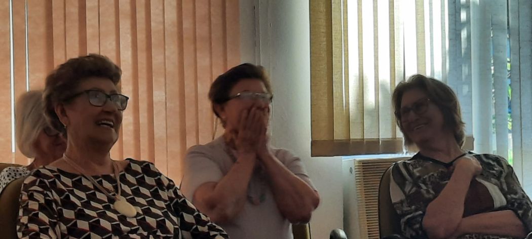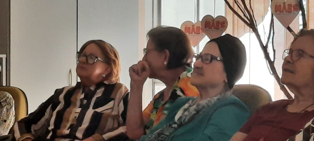 Faço parte do grupo Conecta 60+ e hoje tivemos uma feliz surpresa, um vídeo com nossos filhos e netos dando depoimentos de carinho e de amor, foi uma surpresa maravilhosa. Agradeço demais ao Sesc, aos colaboradores e estagiárias, e todas as minhas colegas que tenho certeza que estão se sentindo como eu, muito feliz e agraciada. Muito obrigada, vocês estão de parabéns pela homenagem que fizeram para nós, mães.