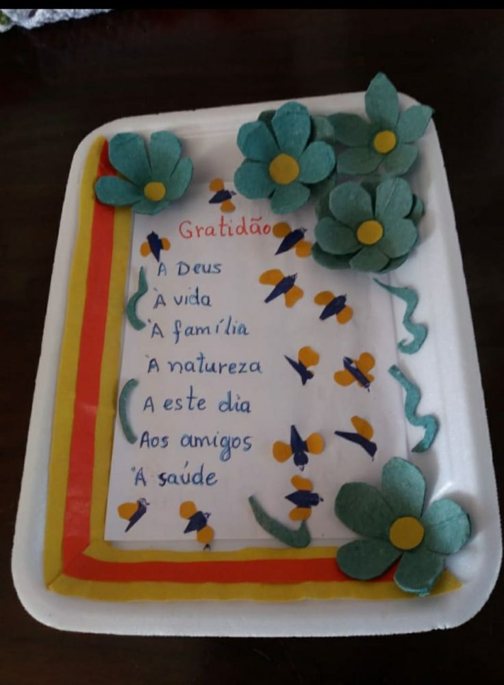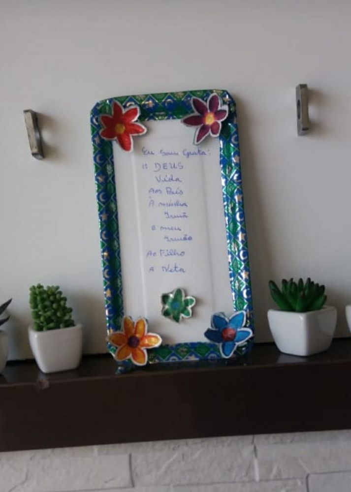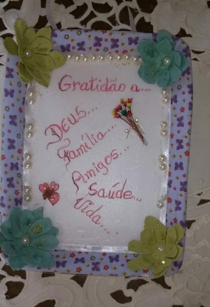 Meu quadro da gratidão foi feito junto com os netos, eles me ajudaram com ideias, recortar e colar. Após a atividade eles passaram a agradecer mais aos pequenos gestos, agradeceram a vó pelo passeio, pelo lanche, pelo pôr do sol. A noite agradeceram pelo dia e pela vida junto comigo. Tudo que aprendemos nos encontros do Sesc repassei a eles e estamos mais gratos pelas pequenas coisas, ajudou bastante toda minha família. Meu quadro da gratidão ficará na sala da minha casa para lembrar todos os dias de agradecer.