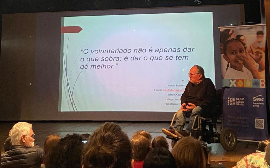 O programa Mesa Brasil Sesc realizou um evento especial em homenagem ao Dia do Voluntário, abordando o tema "A importância do voluntariado social na transformação de realidades". A ação foi organizada pelo Sesc Chapecó e contou com a palestra de Paulo Roberto Ferronato, coordenador da Fraternidade Cristã da Pessoa com Deficiência de Xanxerê. O evento reuniu 117 participantes de instituições sociais atendidas pelo Mesa Brasil.