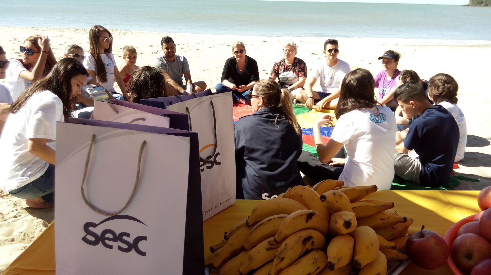 Jovens do projeto Liderança Comunitária de Itajaí desenvolvem ação em praia