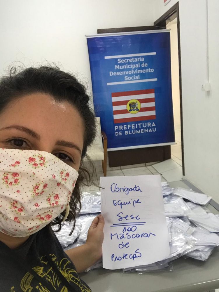 De Brusque, a voluntária Regina Huber Brasciani destaca sua experiência nesta ação. “Ao entregar as máscaras que eu costurei, me senti uma pessoa muito feliz e humana por ter doado um pouco de mim. Pelo pouco que eu ajudo, mas nesse pouco vou poder estar no rosto de um irmão que não pude estar presente pessoalmente, mas vai estar em uma máscara e vai poder se proteger. Eu tenho que agradecer ao Sesc por ter me dado essa oportunidade de poder costurar essas máscaras. E sempre que precisarem, contem comigo”.