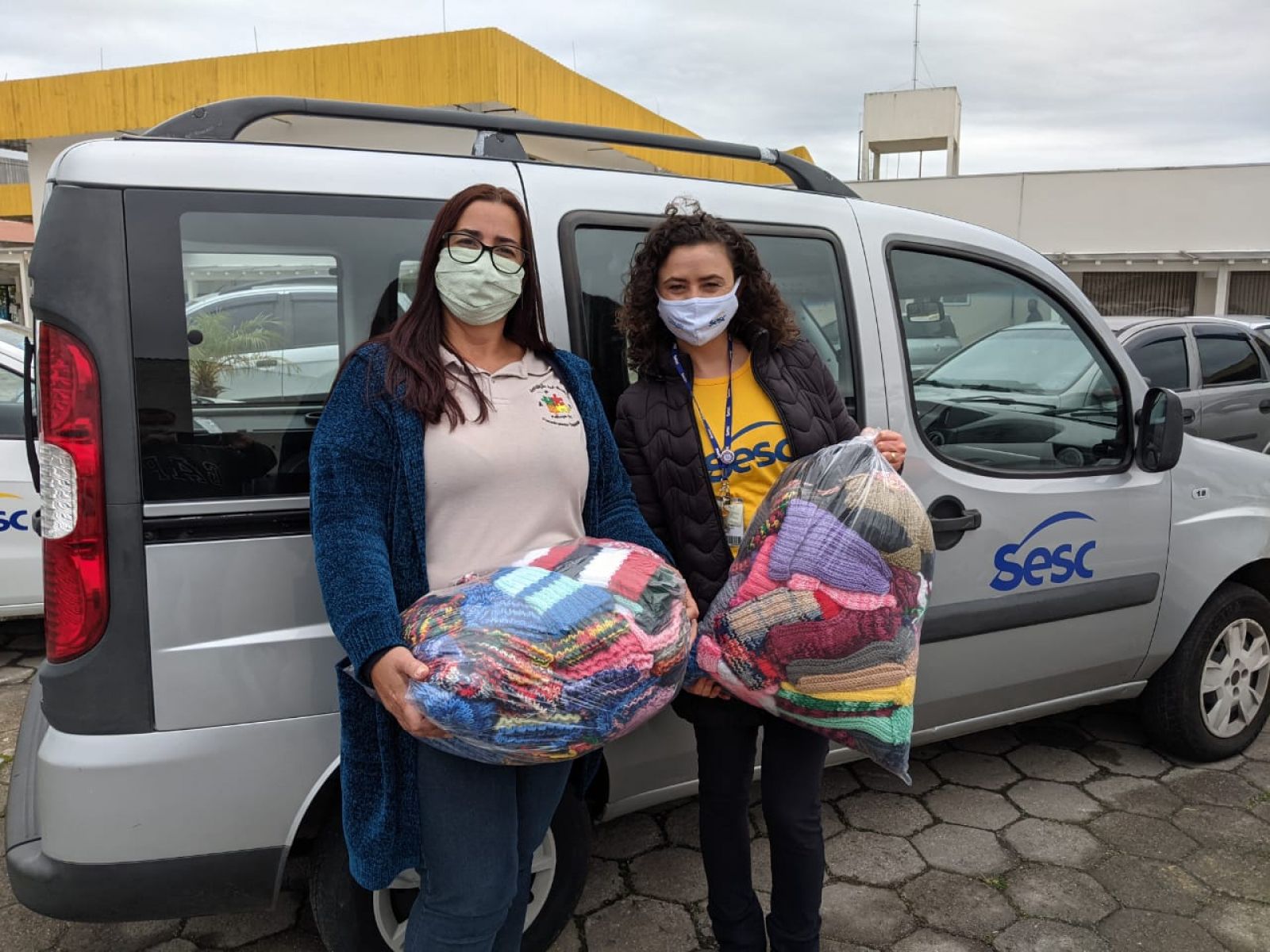 “É muito gratificante levar os novelos nas casas das voluntárias, somos sempre bem acolhidos, sentimos o quão importante tem sido para elas, em meio a pandemia poder realizar este trabalho tão nobre! Além de matarmos as saudades pelos portões e janelas dos prédios”, relata Vanessa Radünz Salles, técnica de Assistência do Sesc Prainha (Florianópolis).