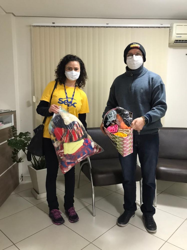 Cada voluntário, além de se dispor a confeccionar as peças, investe seu tempo com muito carinho e cuidado em cada ponto, que faz a diferença na vida das pessoas que recebem. Além de contar com uma rede ampla de voluntários em Florianópolis que se cadastraram no site do Sesc, teve ainda a participação do Grupo do Sesc Mãos à Obra, que reúne voluntárias para produção de peças no período de inverno, para suprir a necessidade de comunidades em vulnerabilidade social. Com a chegada da pandemia e sem os encontros presencias, o grupo se organizou virtualmente para compras de novelos de lãs e o Sesc fez a entrega dos materiais em suas casas. Foram mais de 13 voluntárias do grupo que participaram da Campanha "Arte de Doar".