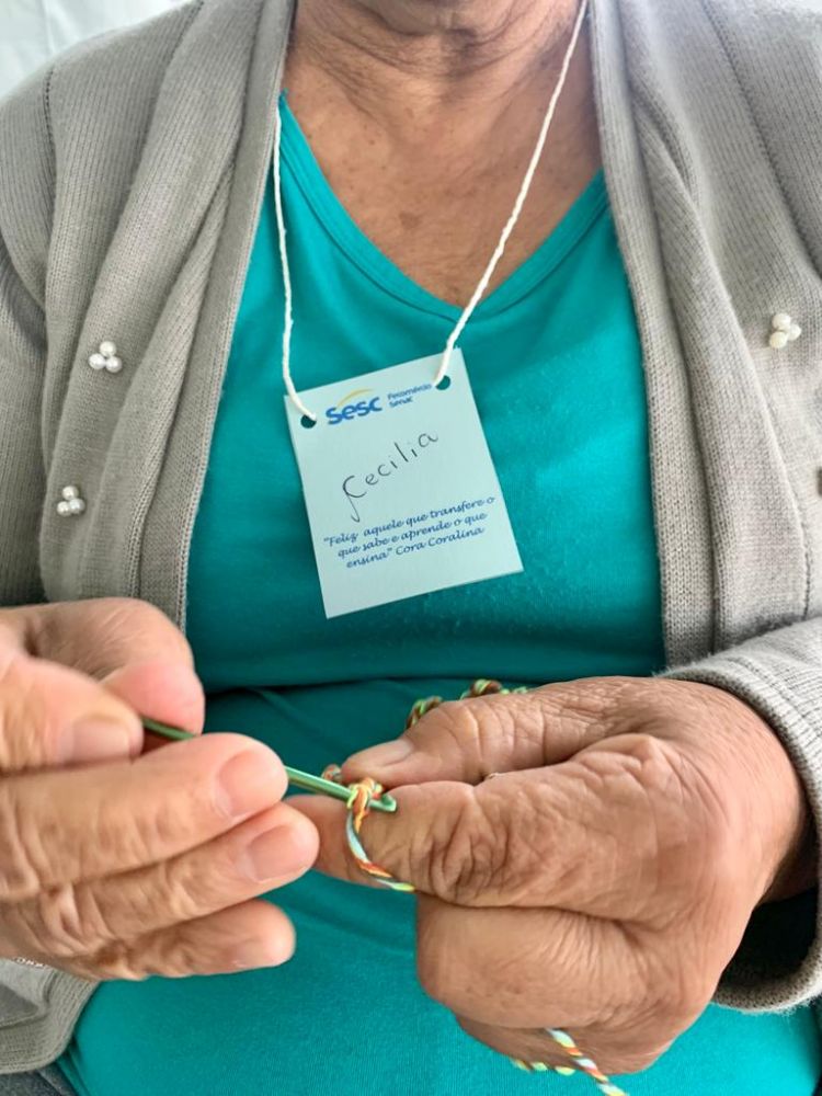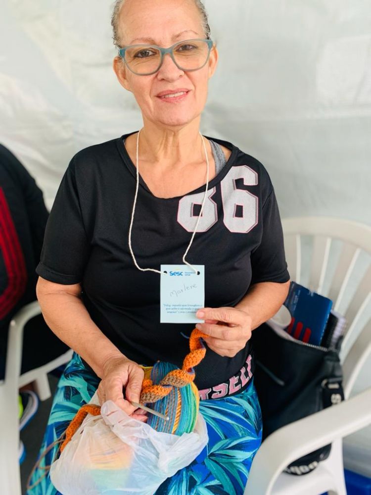 “Já ensinei muitas pessoas a fazer crochê e tricô, muitas dessas assim como eu tiraram o sustento da família com esta arte. Sinto-me muito feliz em repassar a outras pessoas o que sei”, expõe a oficineira Rute Garcez. A Ivonete Mendes da Cruz destaca a importância das atividades do Sesc, “eu sempre participo de tudo que é oferecido, ainda mais sendo perto da minha casa. As atividades do Sesc Comunidade Palhoça são muito importantes para mim, sou aluna da Ginástica e do Ritmos e venho quase todos os dias aqui e poder fazer parte desse projeto é maravilhoso”.