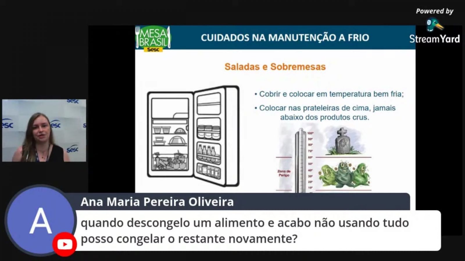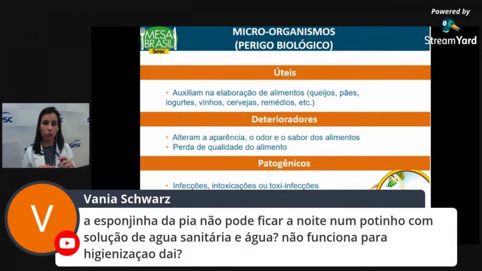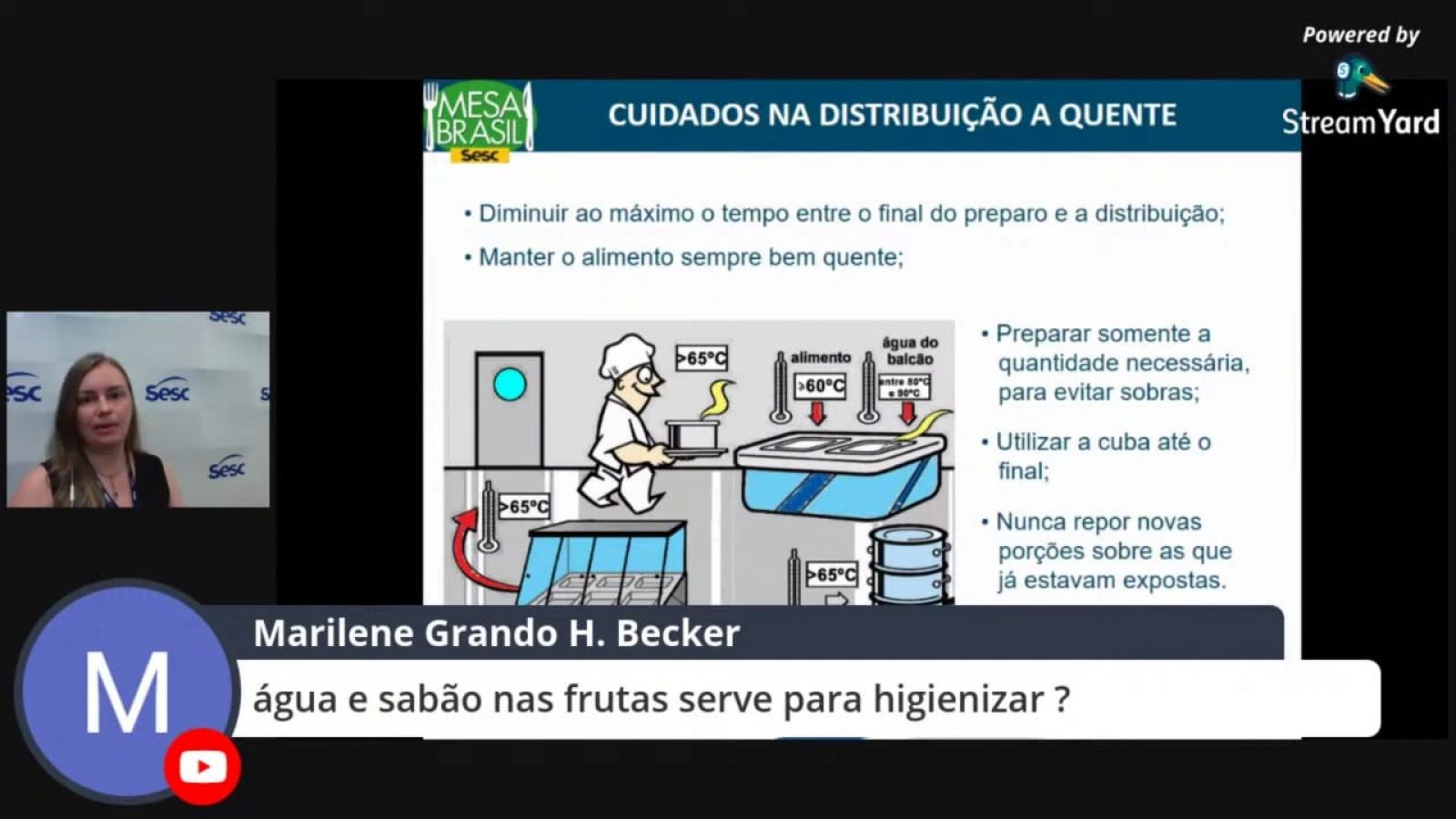 O programa Mesa Brasil Sesc-SC realizou, na quarta-feira (14/04), de forma virtual, a primeira edição deste ano da Capacitação sobre Boas Práticas na Manipulação de Alimentos, ação educativa que tradicionalmente é realizada para as instituições sociais cadastradas no programa, com o objetivo de compartilhar conhecimentos sobre a maneira adequada de manipular os alimentos visando a produção de refeições seguras, e neste ano, contemplou também orientações para a prevenção da Covid-19.