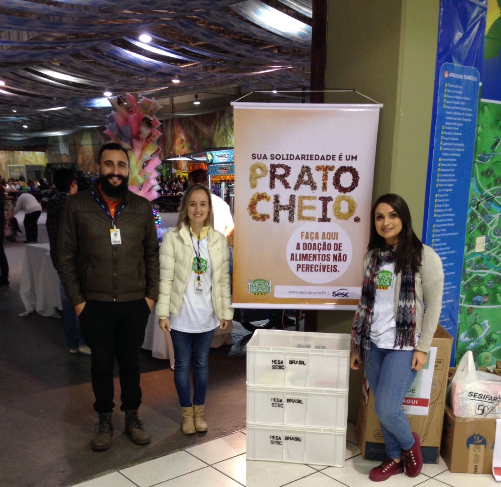 No início do mês de junho, Santa Catarina passou por dias de intensas chuvas, que deixaram muitas pessoas desalojadas ou desabrigadas no Estado, especialmente nas regiões Serrana e Alto Vale do Itajaí. O Programa Mesa Brasil Sesc levou apoio emergencial às áreas prioritárias apontadas pela Defesa Civil, buscando em sua rede de parceiros itens de primeira necessidade para distribuir nesses locais. No total, foram arrecadados 2.200 itens de limpeza e higiene pessoal, e 7,5 mil quilos de alimentos, destinados a aproximadamente duas mil pessoas afetadas pelas chuvas.
