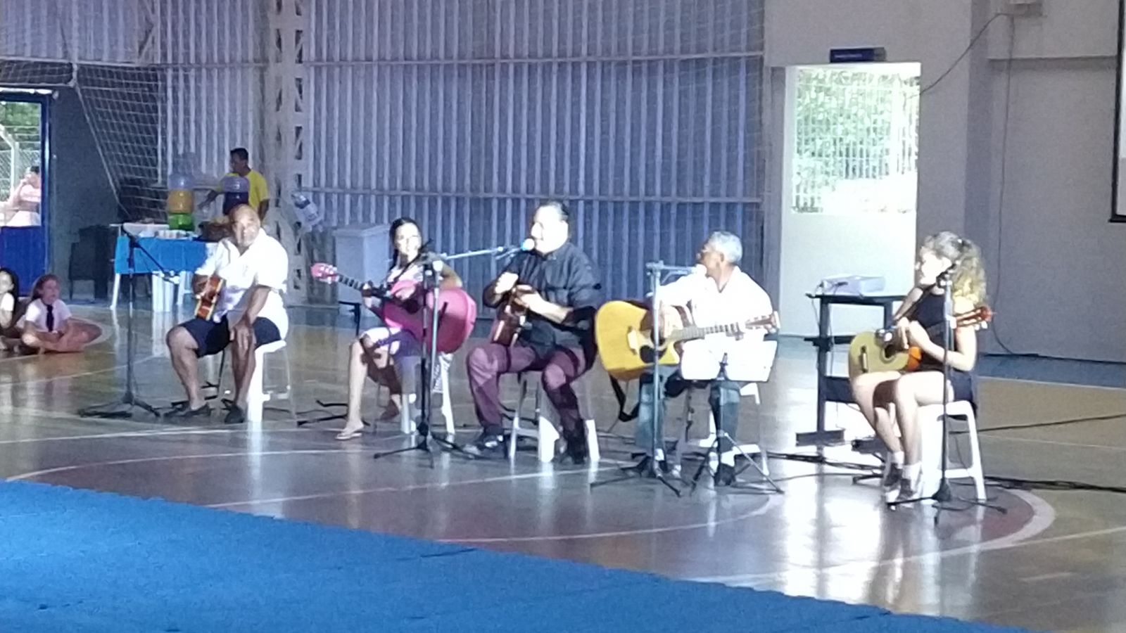A seguir teve apresentações da turma de violão ministrada pelo músico Marcos de Lara que é voluntário do projeto. Destaque da noite foi para o Sr. Francisco, de 63 anos, que em menos de um ano fez uma apresentação surpreendente.