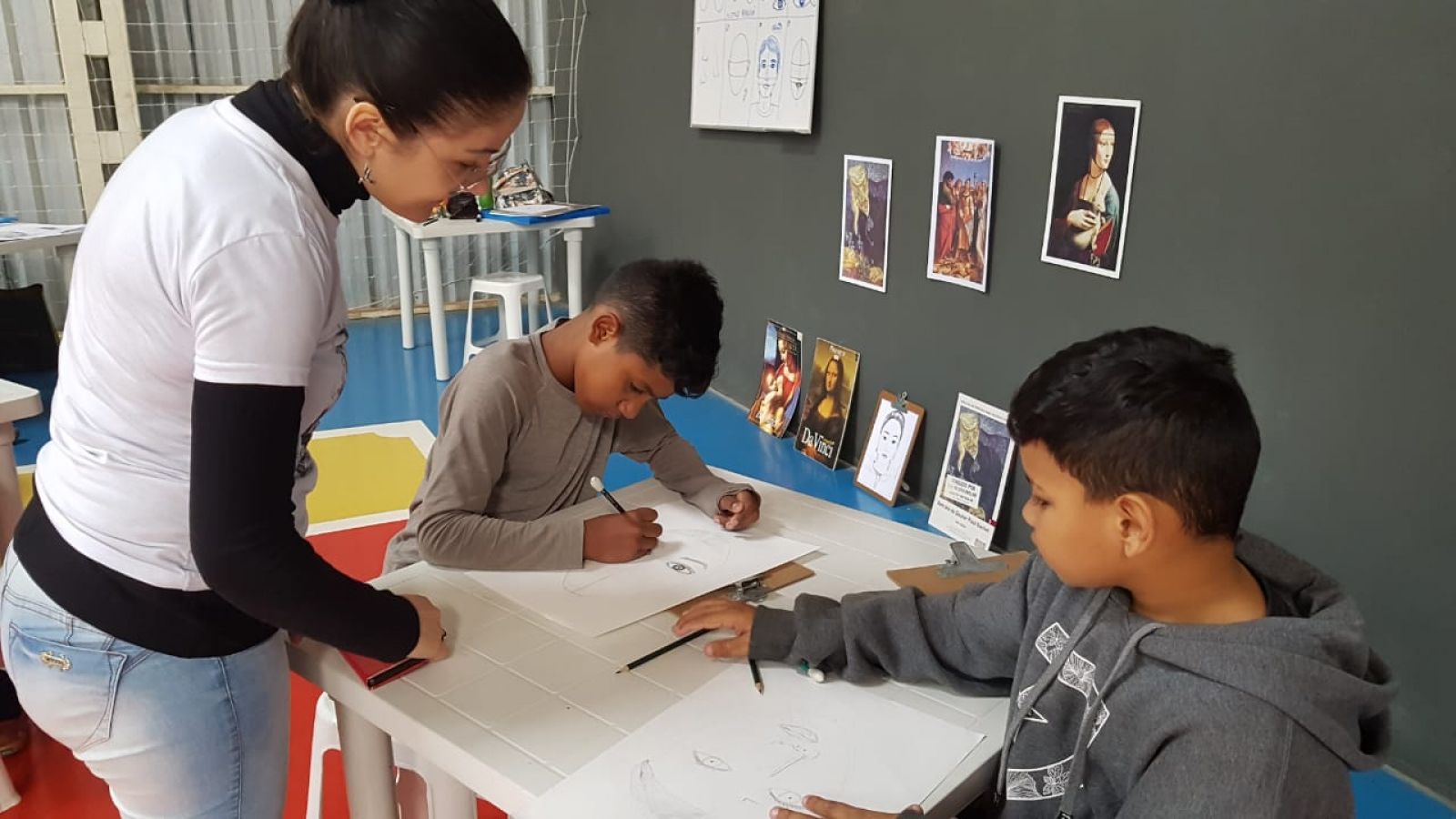 "Eu achei a oficina de artes bem legal. Eu aprendi mais sobre a natureza morta e sobre o realismo. A professora me deu várias dicas que vou usar para os meus próximos desenhos". Emilly, 11 anos.