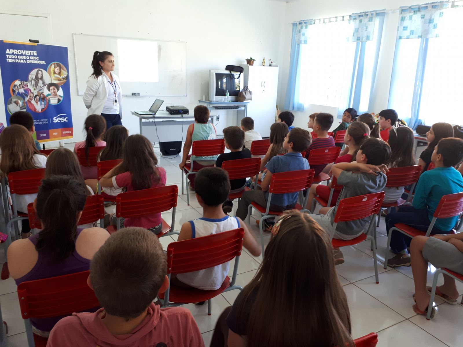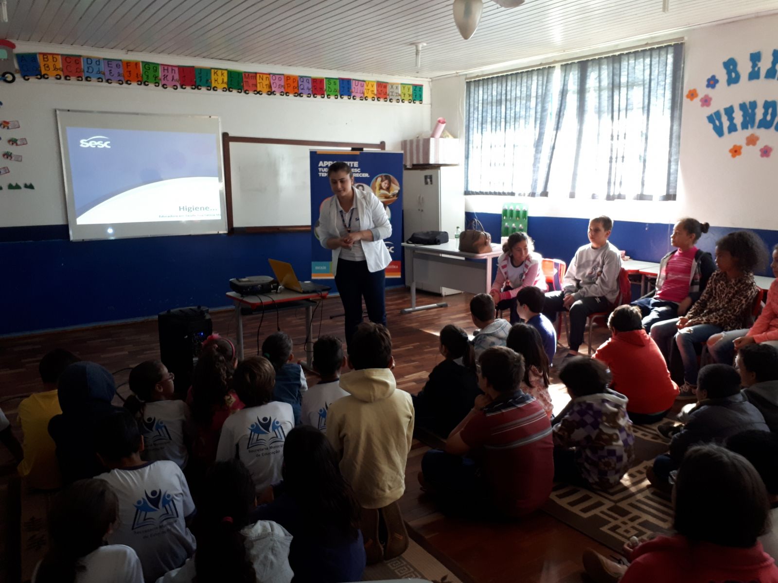 A palestra foi realizada por Ana Letícia Mandrik, técnica em Saúde do Sesc Concórdia, que abordou os temas: hábitos de higiene, a necessidade de cuidados com o corpo nessa transição de fase de ser criança para adolescente, e os cuidados com as mãos, cabelos, dentes entre outros, além, da importância de manter o ambiente limpo onde vivem e onde estudam.