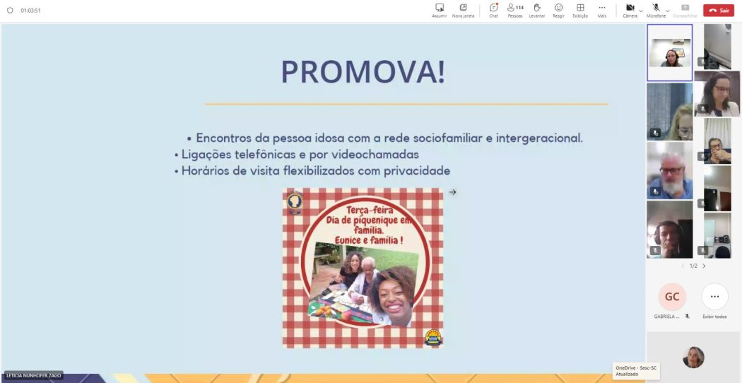 O projeto Pautas à Mesa do Sesc Mesa Brasil Santa Catarina promoveu mais um encontro, e reuniu 106 representantes de organizações sociais e parceiros de todas as regiões do estado para celebrar o Junho Violeta, mês da conscientização da violência contra a pessoa idosa, e compartilhar as boas práticas adotadas pela Seove, Instituição de Longa Permanência para pessoas idosas (ILPI), cadastrada na rede de Bancos de Alimentos do Sesc há mais de 20 anos, e que foi considerada modelo de atendimento humanizado em Florianópolis. O objetivo desta ação foi reconhecer, valorizar e incentivar o desenvolvimento das organizações sociais da rede Sesc Mesa Brasil, que atuam com pessoas idosas em diversas cidades do estado, e disseminar o fazer dos diferentes serviços que compõem uma ILPI à luz do Estatuto da Pessoa Idosa.