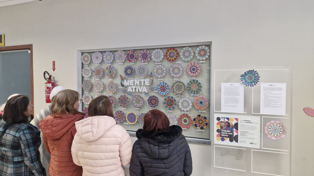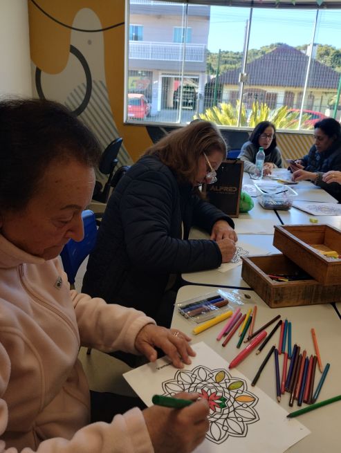 Durante o mês de junho, a Unidade do Sesc em São Joaquim desenvolveu uma atividade especial com os participantes do Programa Mente Ativa, unindo arte, estimulação cognitiva e bem-estar: a confecção e pintura de mandalas.