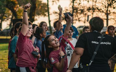 Nos dias 4 e 5 de outubro, o Hotel Sesc Cacupé recebeu a etapa estadual do Encontro, reunindo 70 crianças em uma programação que combinou aprendizado, recreação e integração. A abertura contou com uma recepção calorosa e a apresentação das equipes, seguida de atividades gamificadas, oficinas temáticas, escape room e uma animada Festa das Cores.