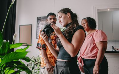 O projeto Além das Lentes, financiado pelo Projeto de Arte e Cultura (PAC) de São José, tem ampliado o acesso à cultura no município por meio da oferta de oficinas audiovisuais em diferentes territórios, em parceria com a Secretaria Municipal de Cultura de São José. No Sesc Comunidade São José, as atividades são ministradas por Ângela Reck e acontecem semanalmente às quartas-feiras, das 19h45 às 21h, desde julho de 2024.