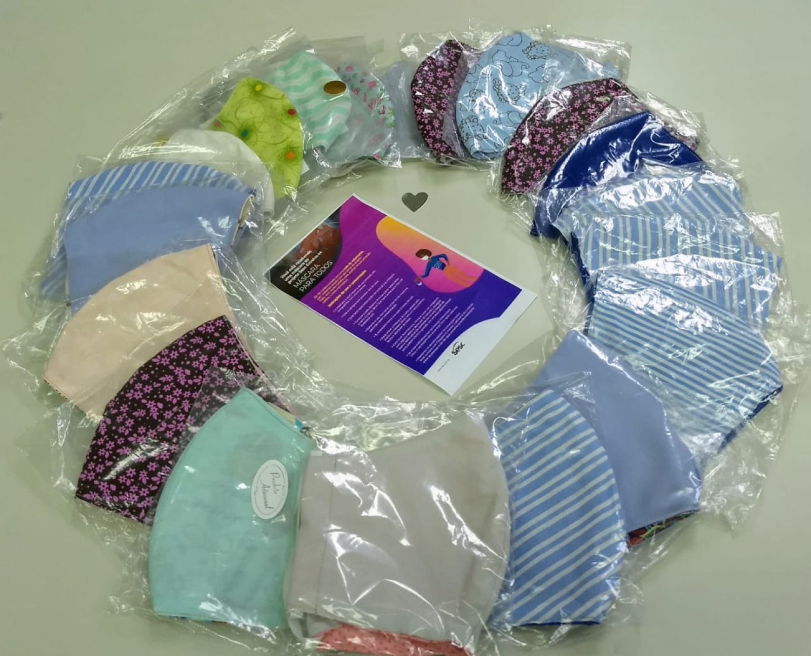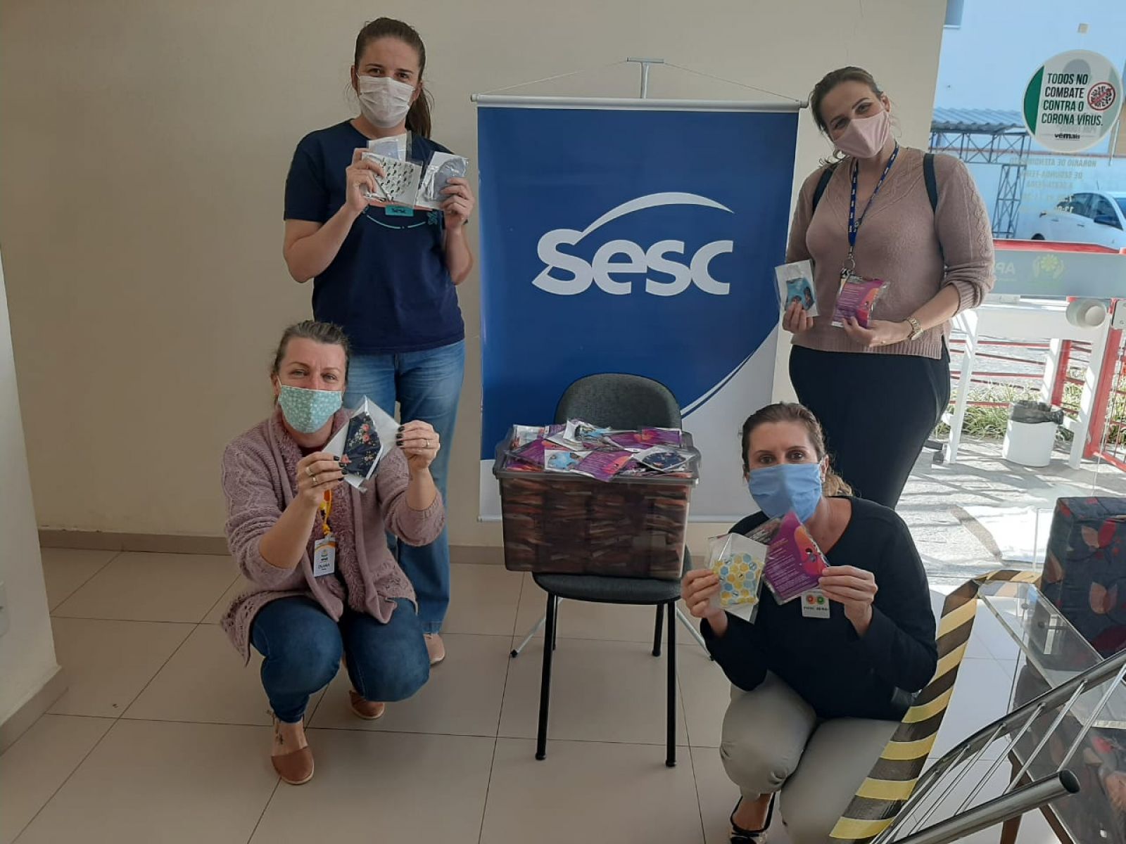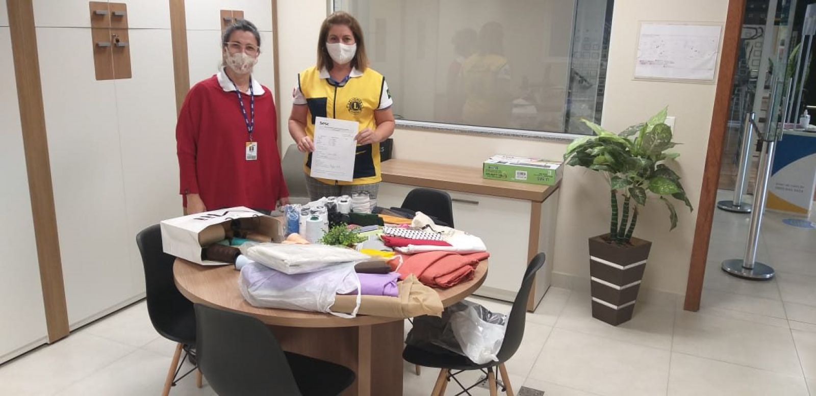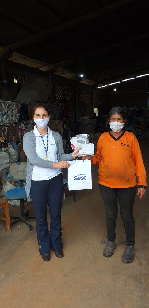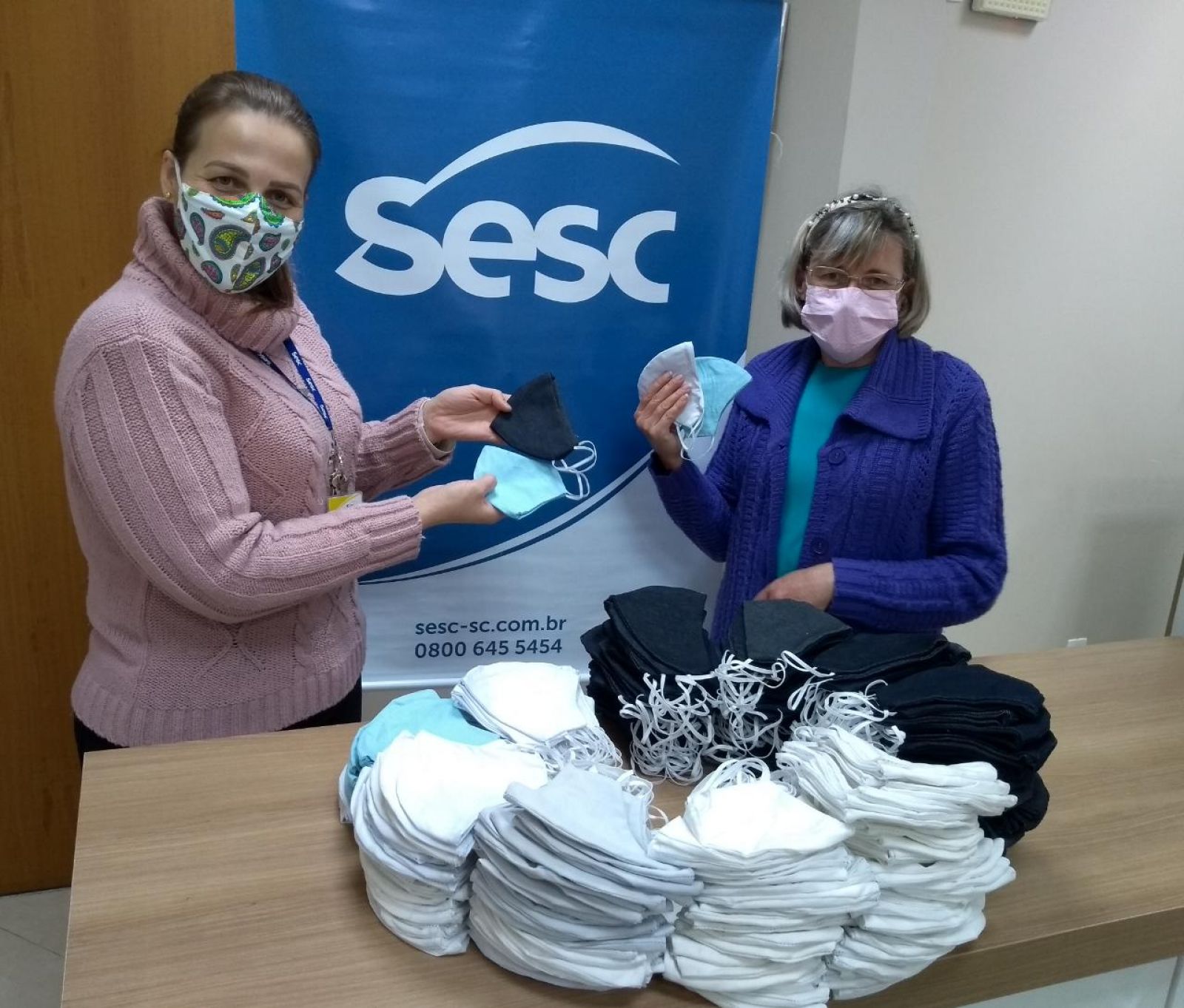 O Sesc arrecadou tecidos 100% algodão, TNT, malha/fio de malha, tesoura de tecido, agulhas, linhas, elásticos. Podiam doar pessoas físicas ou empresas, e era preciso fazer contato com a Unidade do Sesc Santa Catarina para agendar a entrega, que a Instituição ia até o local para receber o material.