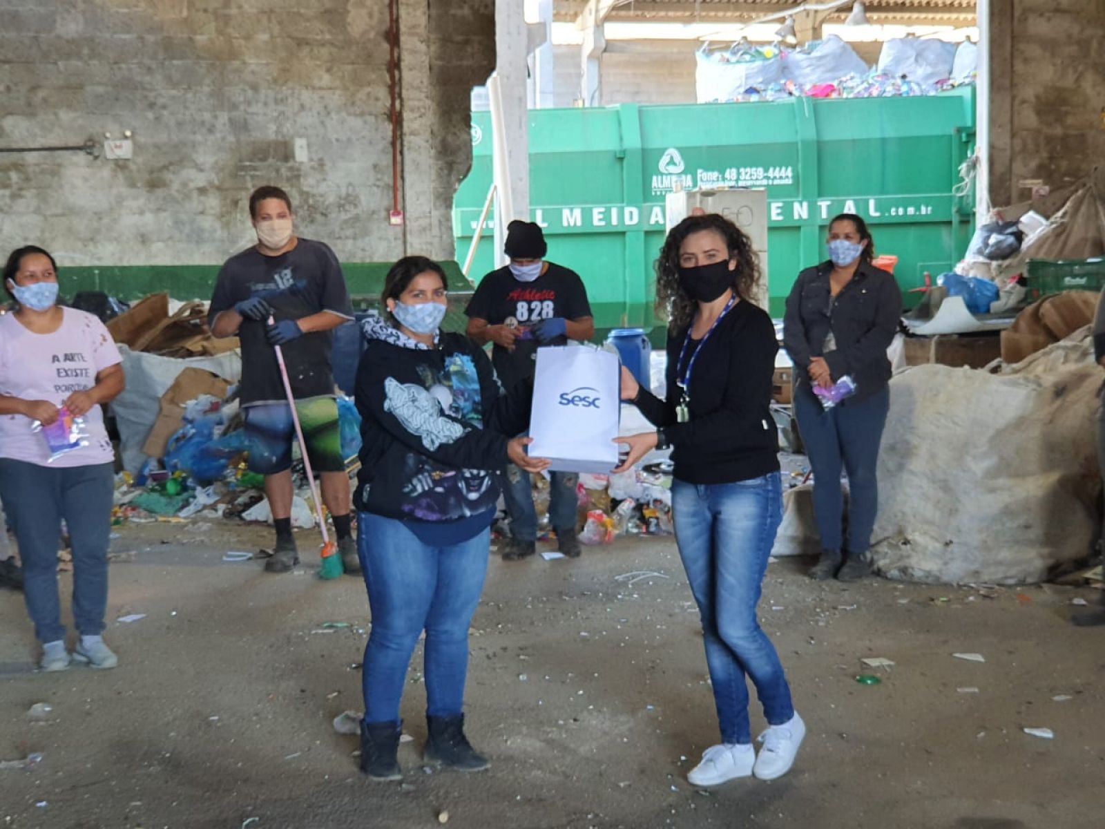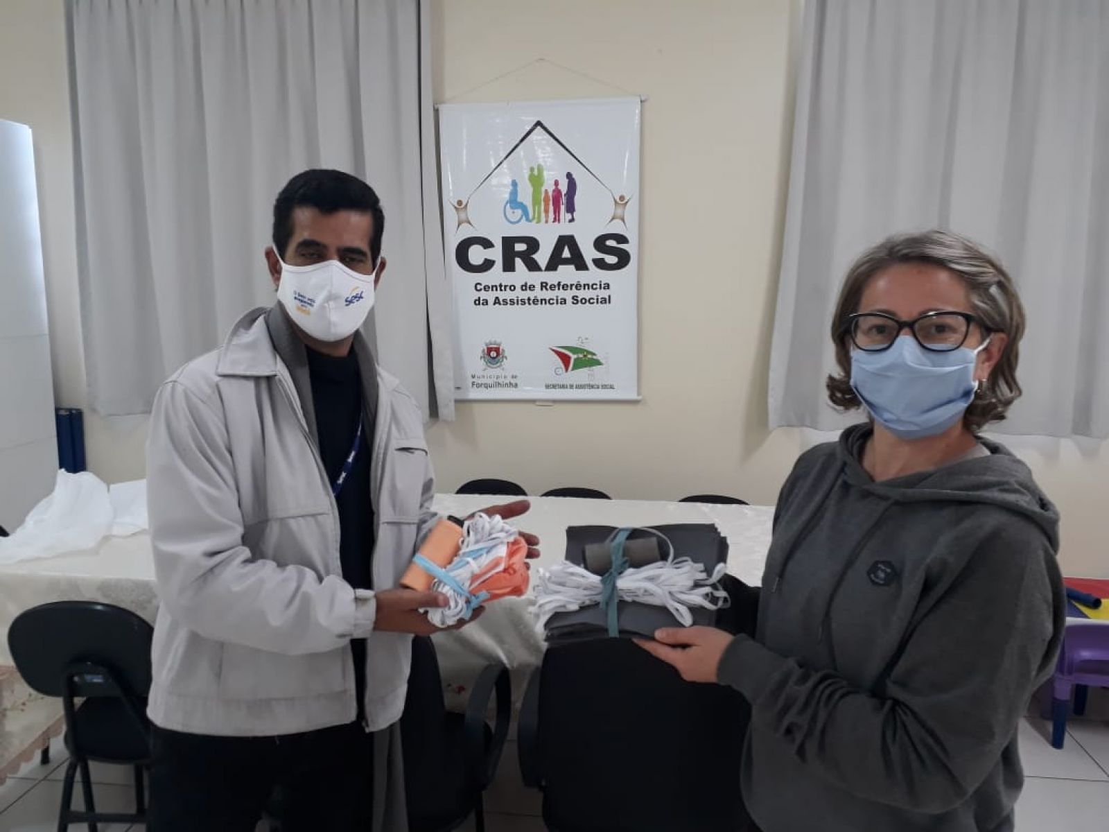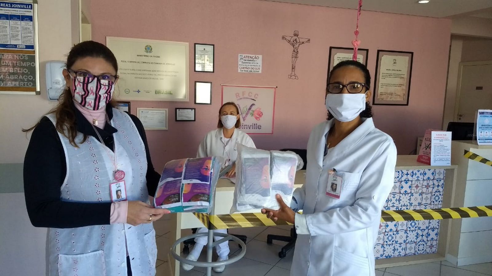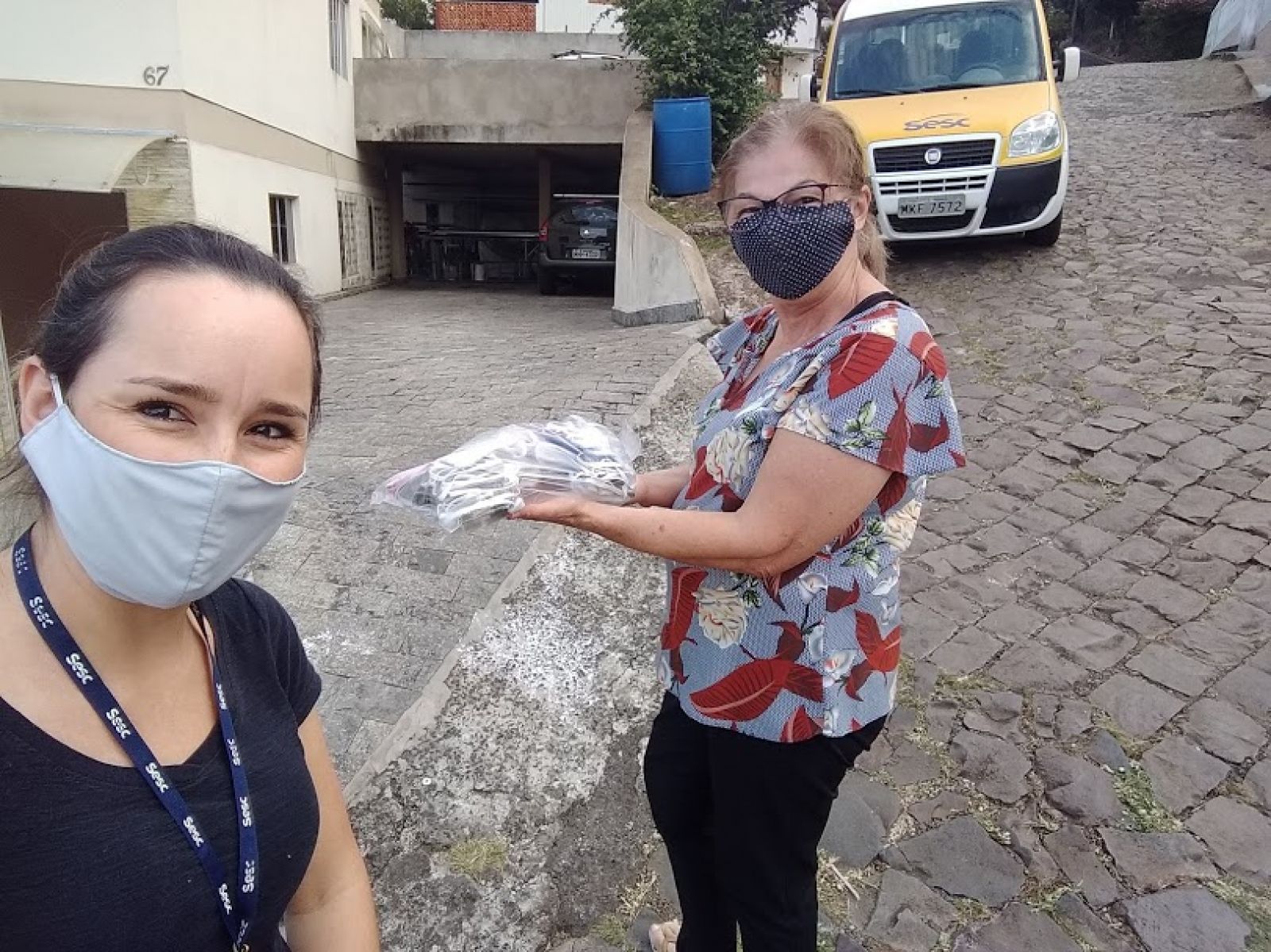 O Sesc arrecadou tecidos 100% algodão, TNT, malha/fio de malha, tesoura de tecido, agulhas, linhas, elásticos. Podiam doar pessoas físicas ou empresas, e era preciso fazer contato com a Unidade do Sesc Santa Catarina para agendar a entrega, que a Instituição ia até o local para receber o material.