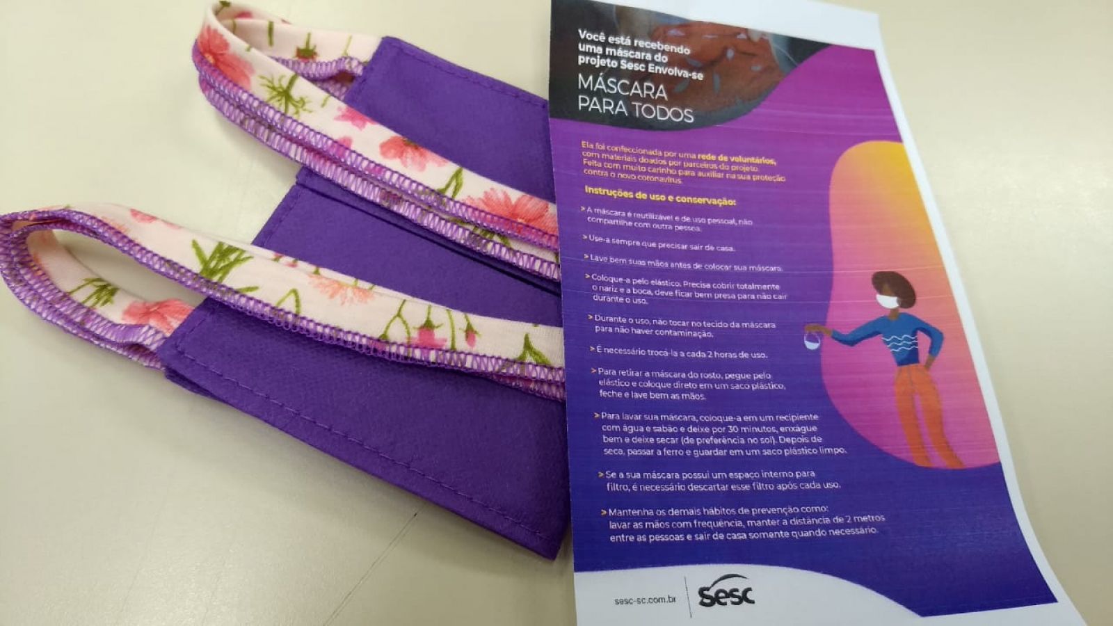 Com a ação “Máscara para Todos”, do projeto "Envolva-se", o Sesc uniu 448 voluntários e 265 comunidades e instituições sociais, de meados de abril até final de 2020. Como resultado, foram produzidas 72.681 máscaras, beneficiou 72.224 pessoas, com os 2.651 metros de tecido, 6.303 metros de elástico, 283 rolos de linha arrecadados, e kits (tecido cortado e elástico) para 25 mil máscaras.