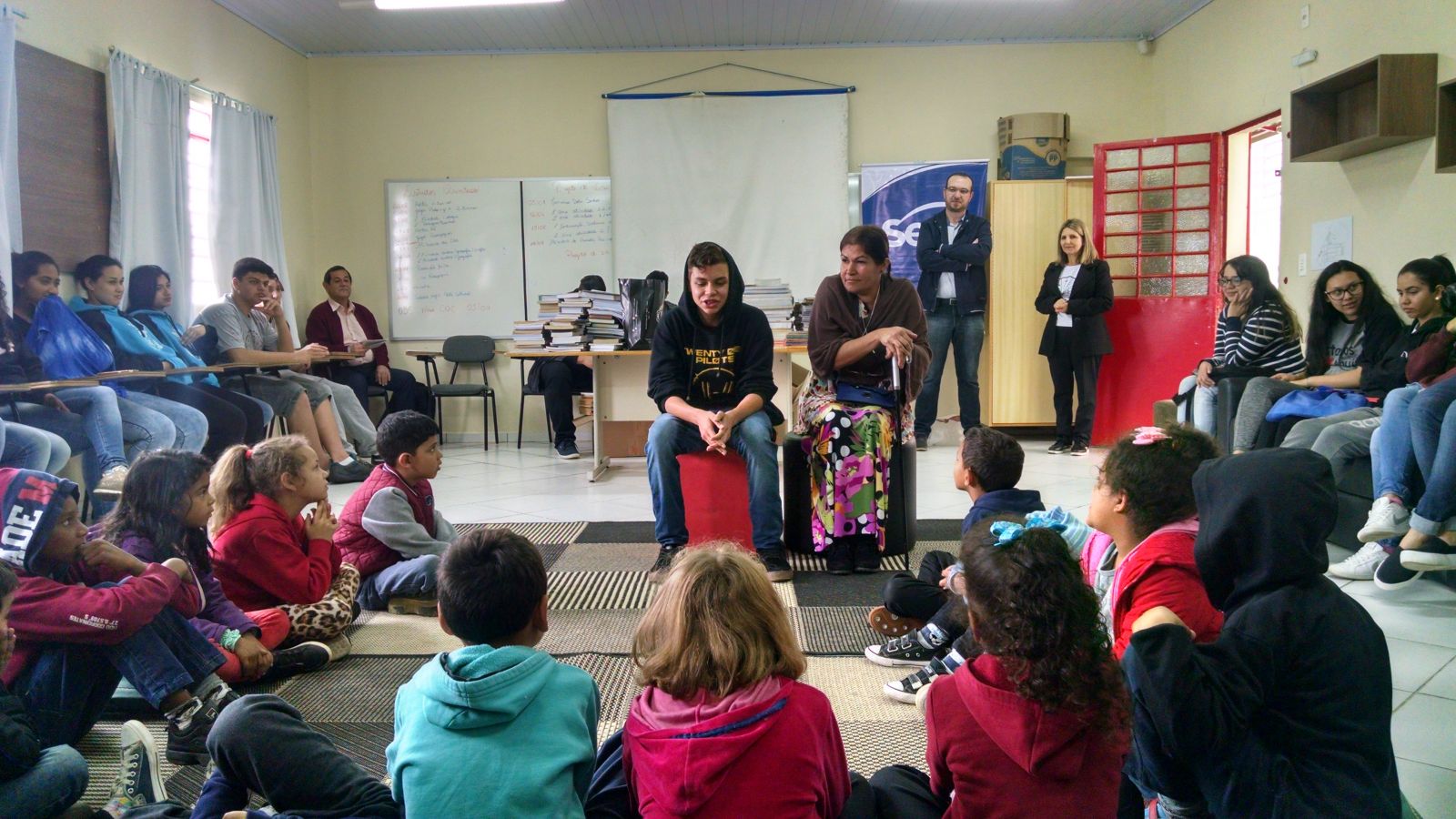 Os adolescentes desenvolveram o projeto para integrar as pessoas à leitura, para melhorar a qualidade de vida, criando laços de amizade, interesse mútuo e abrindo novos horizontes. Para a ação os envolvidos tiveram acesso aos livros disponibilizados nos locais. Envolver a comunidade e incentivar a leitura são os propósitos principais do projeto desenvolvido pelos alunos da Escola Visconde de Cairú, bairro Vila Nova, em parceria com o Sesc, instituto Junior Achievement e a Universidade do Planalto Catarinense (Uniplac).