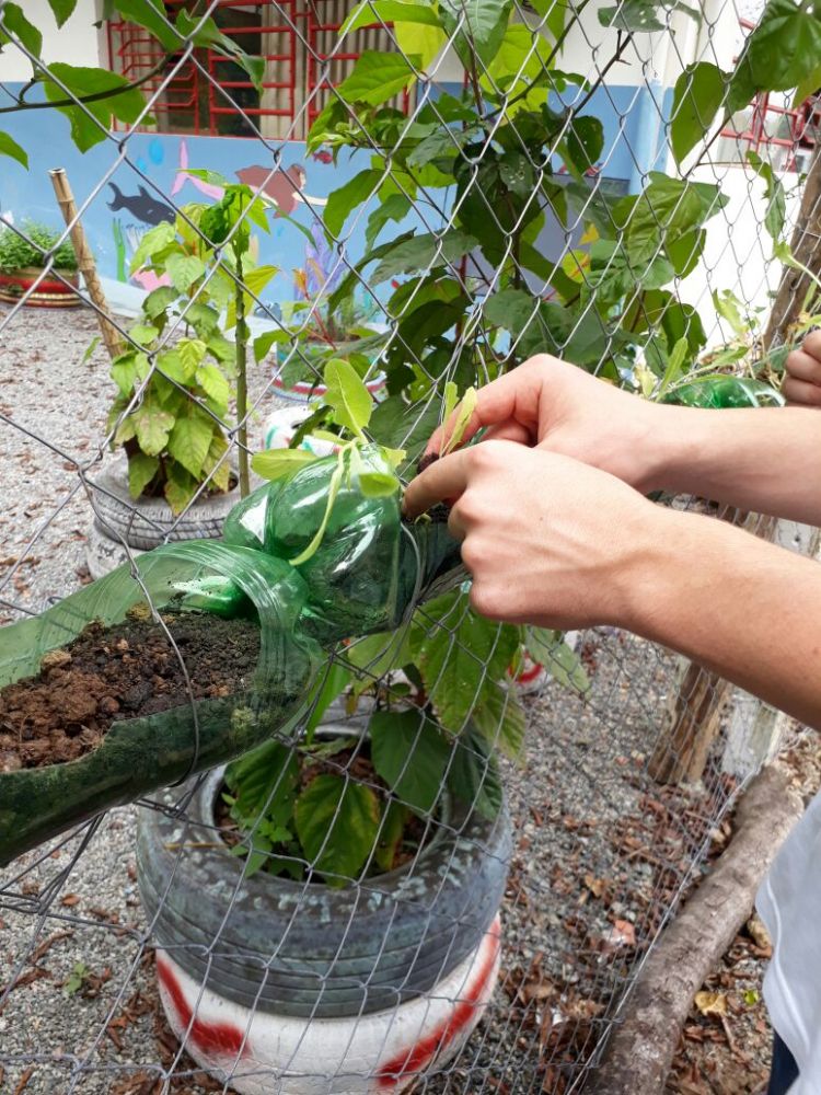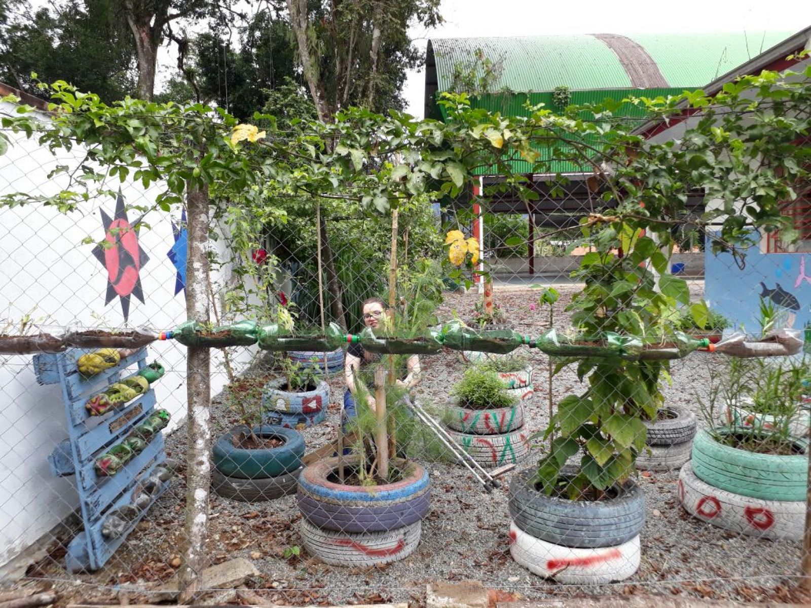 cuidar de uma horta e do meio ambiente. Reutilizando materiais e um espaço que
