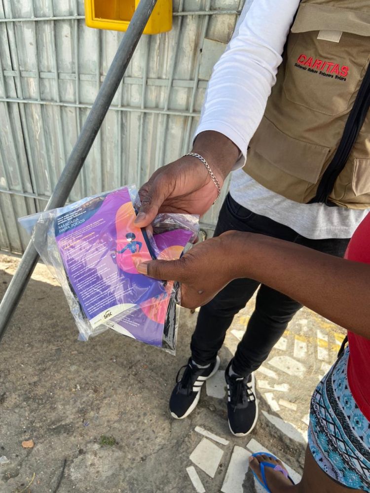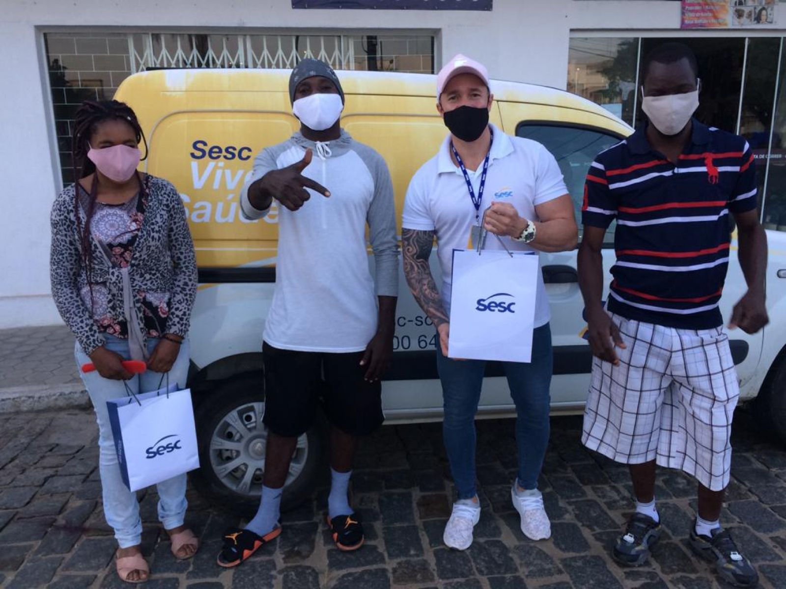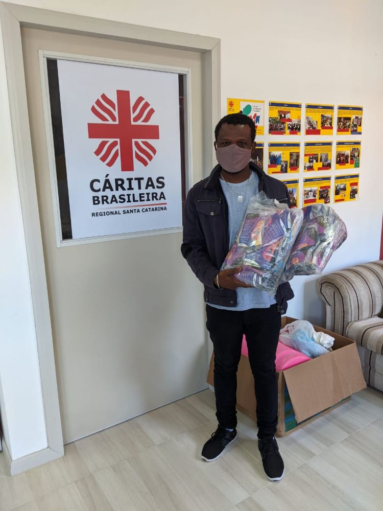Foi muito bom ter recebido essas máscaras do Sesc, porque a gente já estava precisando. Como temos muitas pessoas trabalhando aqui, não temos o suficiente para suprir o dia todo de trabalho, porque tem que estar trocando. Foi bem importante a gente ganhar essas máscaras hoje, espero que venham mais!Jean Samuel Rosier, imigrante Haitiano que faz parte da Cáritas, onde entregamos doações em Florianópolis.