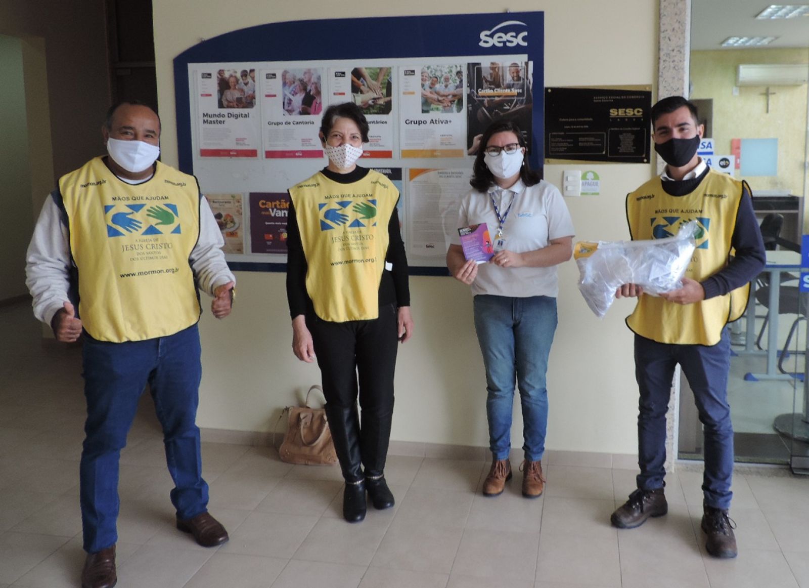 Escutei sobre a campanha ‘Máscara para Todos’ na rádio e logo entrei em contato com o Sesc. Nosso objetivo em publicidade e marketing sempre foi divulgar nossa marca podendo ajudar o próximo. Nos faz muito bem, poder fazer o bem. Poder contribuir de alguma forma neste momento que estamos passando.Miriam E Ribeiro, presidente da rede feminina de Brusque