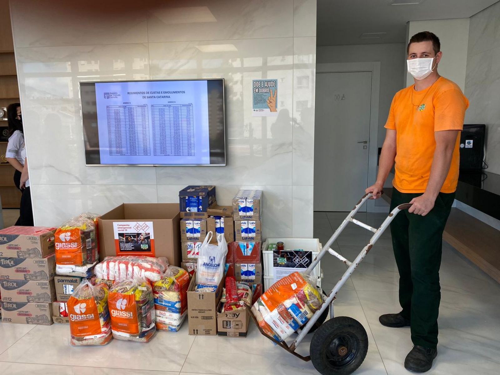 Em Lages, o destaque desta semana é do ponto de coleta da Campanha Covid-19 instalado no Supermercado Myatã do bairro Coral, onde o programa recebeu uma doação de 60 cestas básicas (1.213 kg de alimentos) por meio da Fiepe/Cav Udesc. Esses alimentos serão entregues pelo Programa Mesa Brasil às famílias da Associação de Carroceiros do município, instituição que é acompanhada tanto pela Udesc quanto pelo Mesa Brasil Sesc, inclusive nesse período de isolamento social.