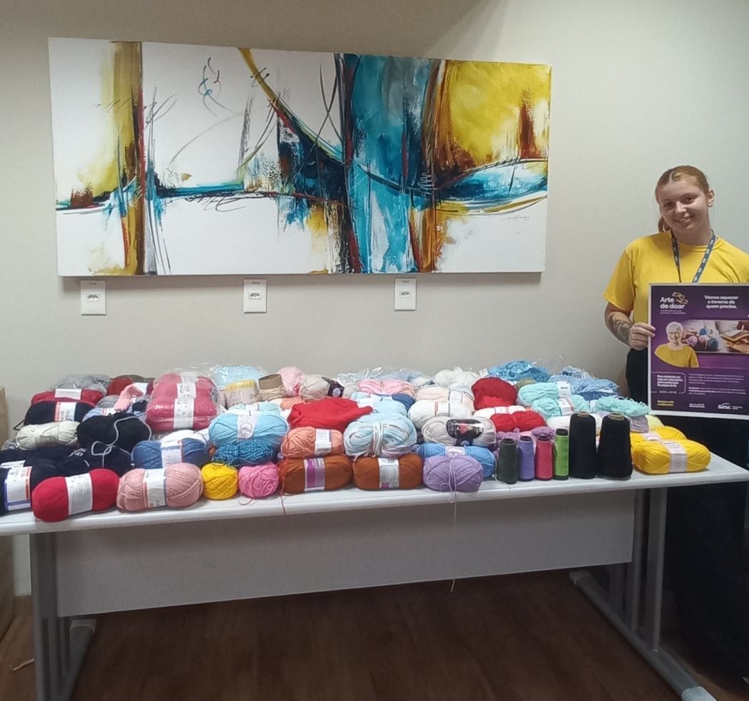 O objetivo da iniciativa é convidar para a doação de materiais de lã e a participação de voluntários para a produção de peças como toucas, luvas, meias e cachecóis que são entregues para instituições sociais.
